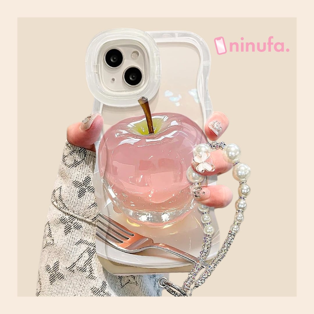 とびだす!?クリスタルアップルに視線集中◎うねうねクリアケース 2WAYスタンドつき 保護フレーム りんご プリント 可愛い スマホケース ND-16225