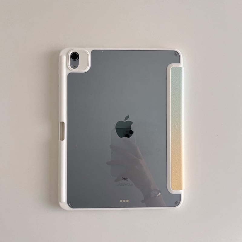 【iPadカバー】美しいグラデーション◎用途に合わせて折りたたむ スタンド式 iPadケース 背面クリア 耐衝撃 タブレット 透明 アイパッド おしゃれ カバー iPadケース ND-16305