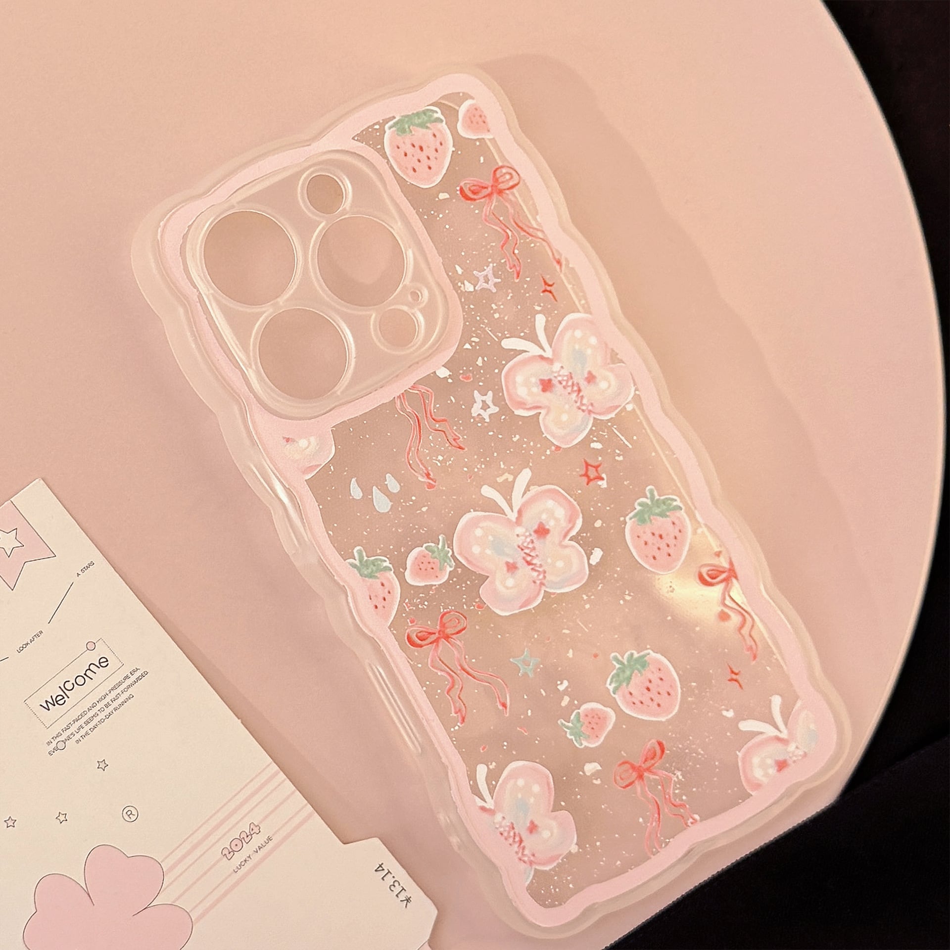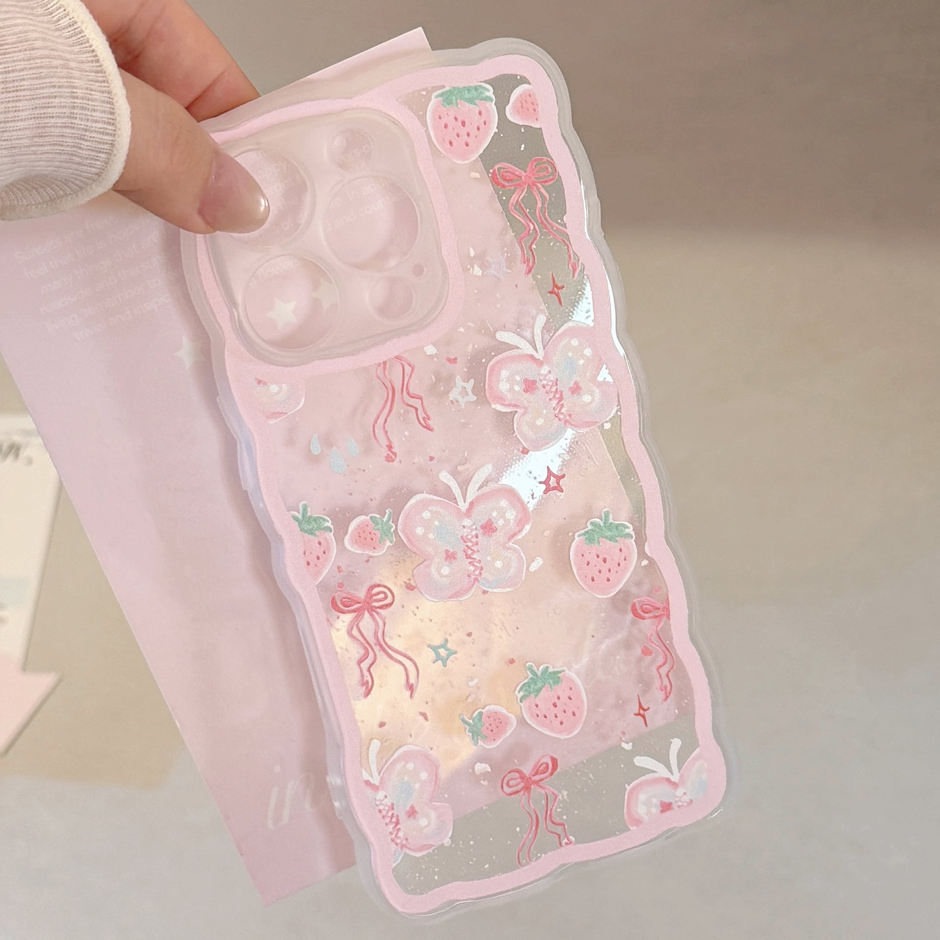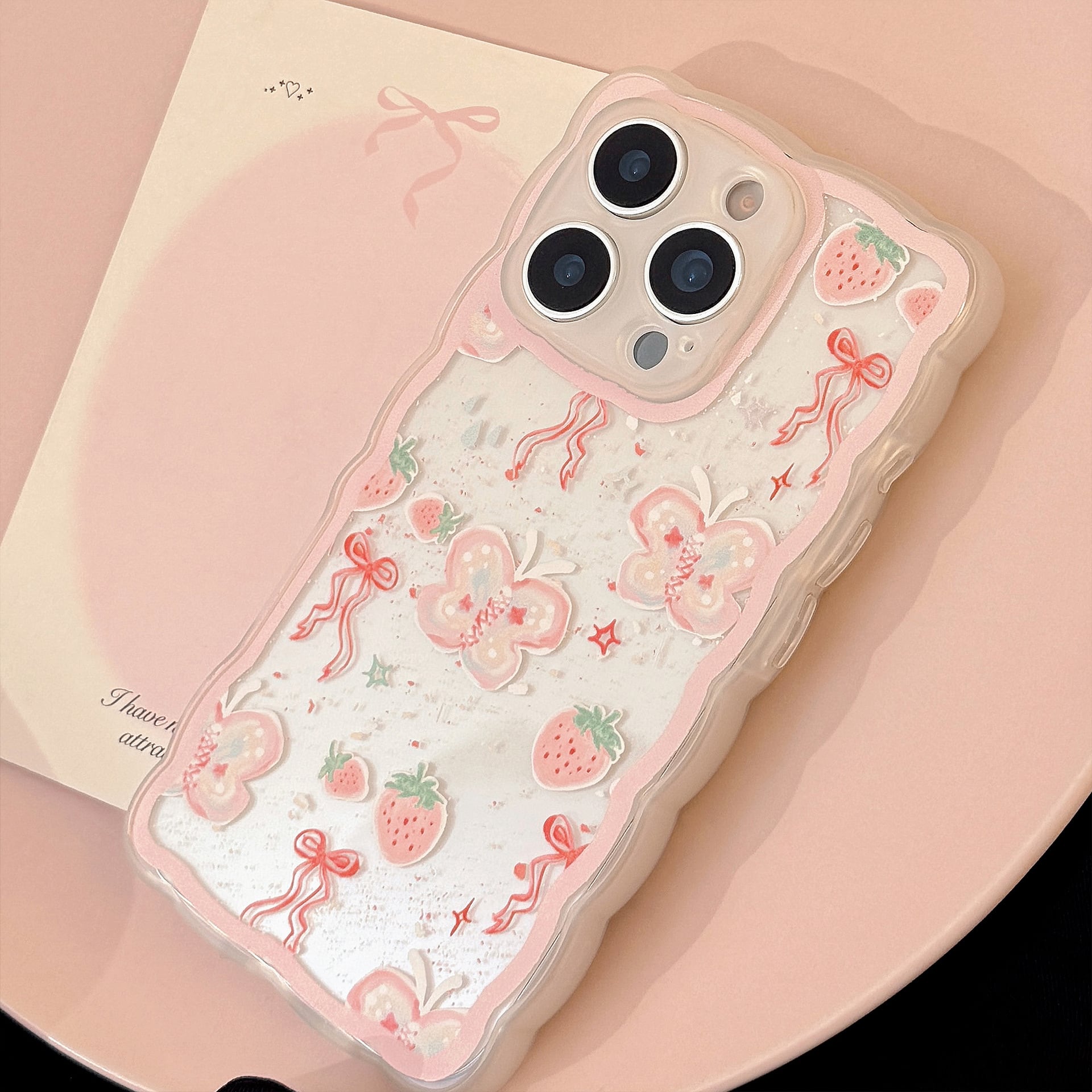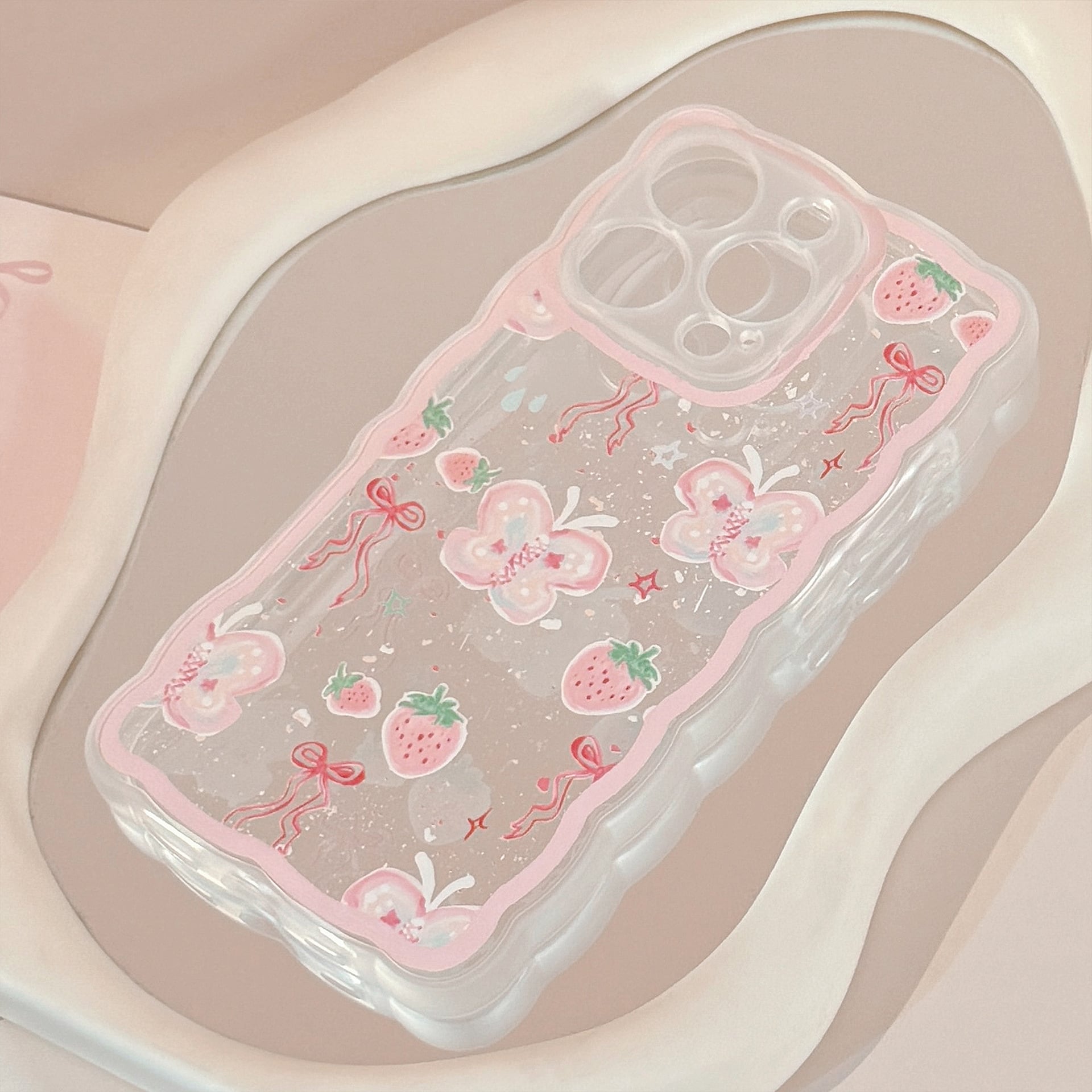 #スマホケース #iPhoneケース #クリアケース #韓国ケース #ウェーブフレーム #いちご #蝶々 #リボン #かわいい #韓国っぽ #透明ケース #推し活 #プレゼント