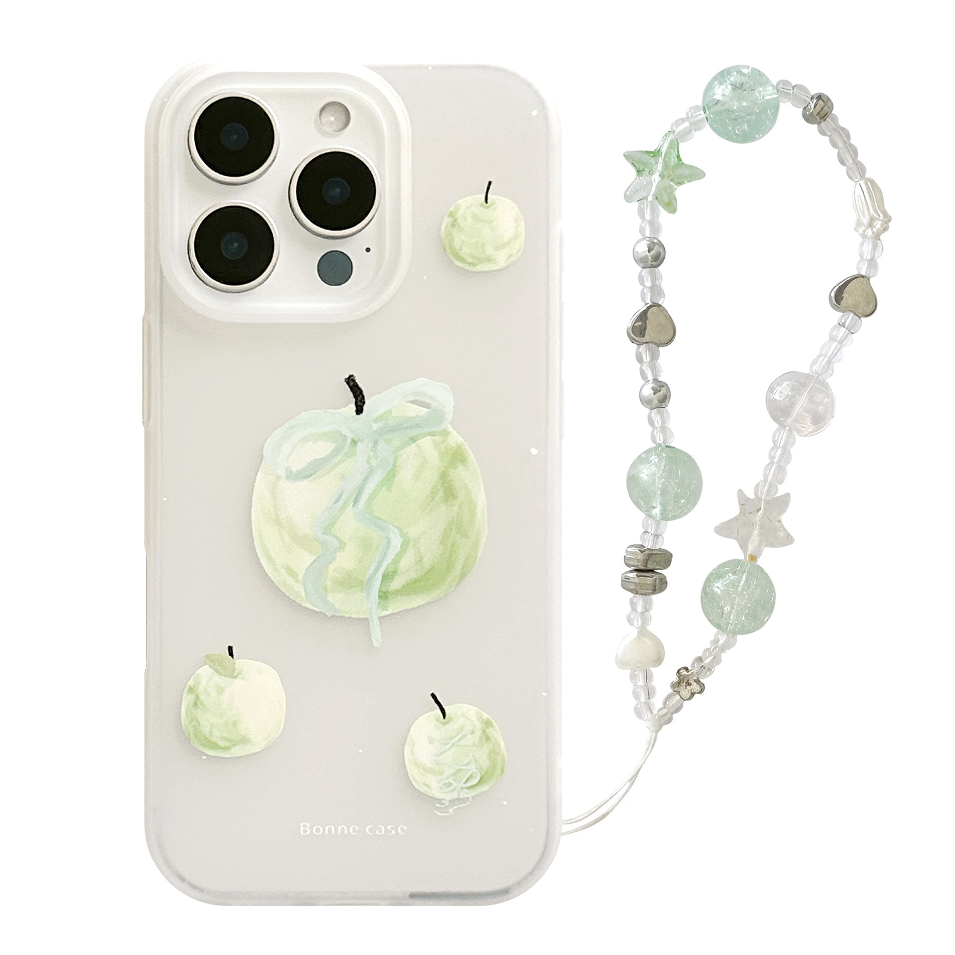 #スマホケース #iPhoneケース #青りんご #マットクリア #半透明ケース #韓国雑貨 #かわいいスマホケース #ビーズストラップ #TPUケース #透明ケース #りんごデザイン #韓国っぽ #ガーリー小物