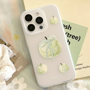 【iPhone17~11まで対応】品の良いマットクリア◎グリーンアップル リボン 艶消し 半透明 青リンゴ スマホケース ND-16382