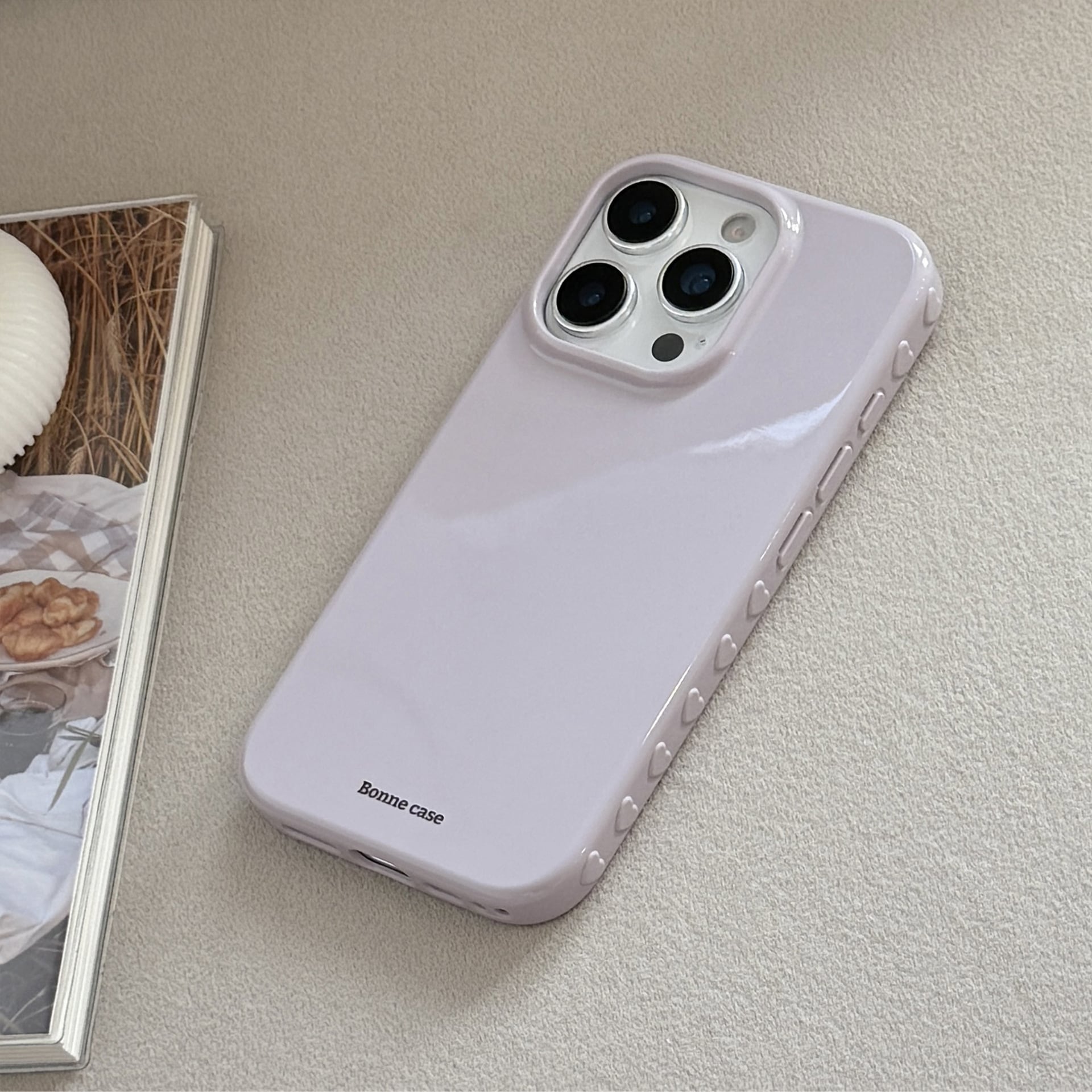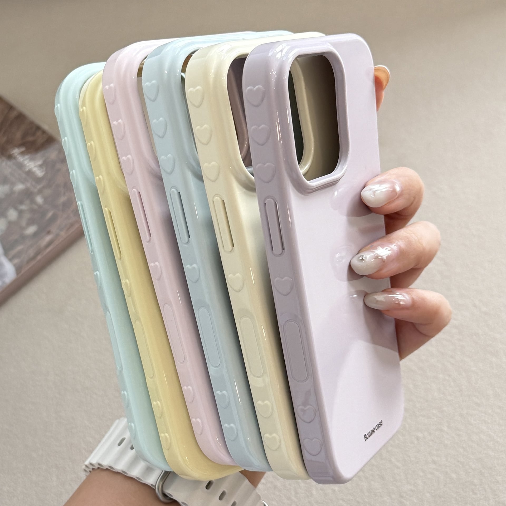 【iPhone17~12まで対応】シンプルでかわいいって最高◎6色から選べるケース 韓国 パステルカラー ハート柄 艶 スマホケース ND-16555