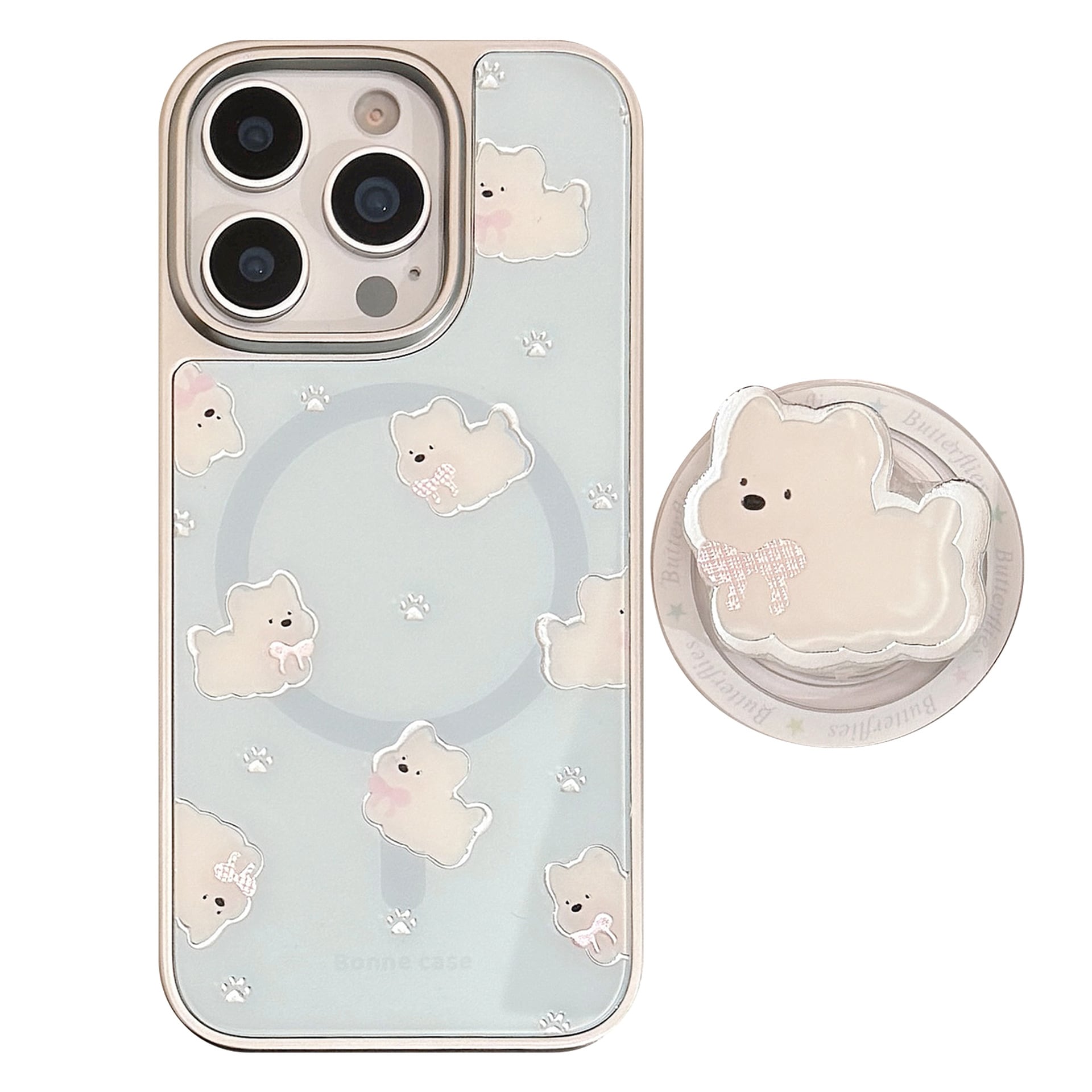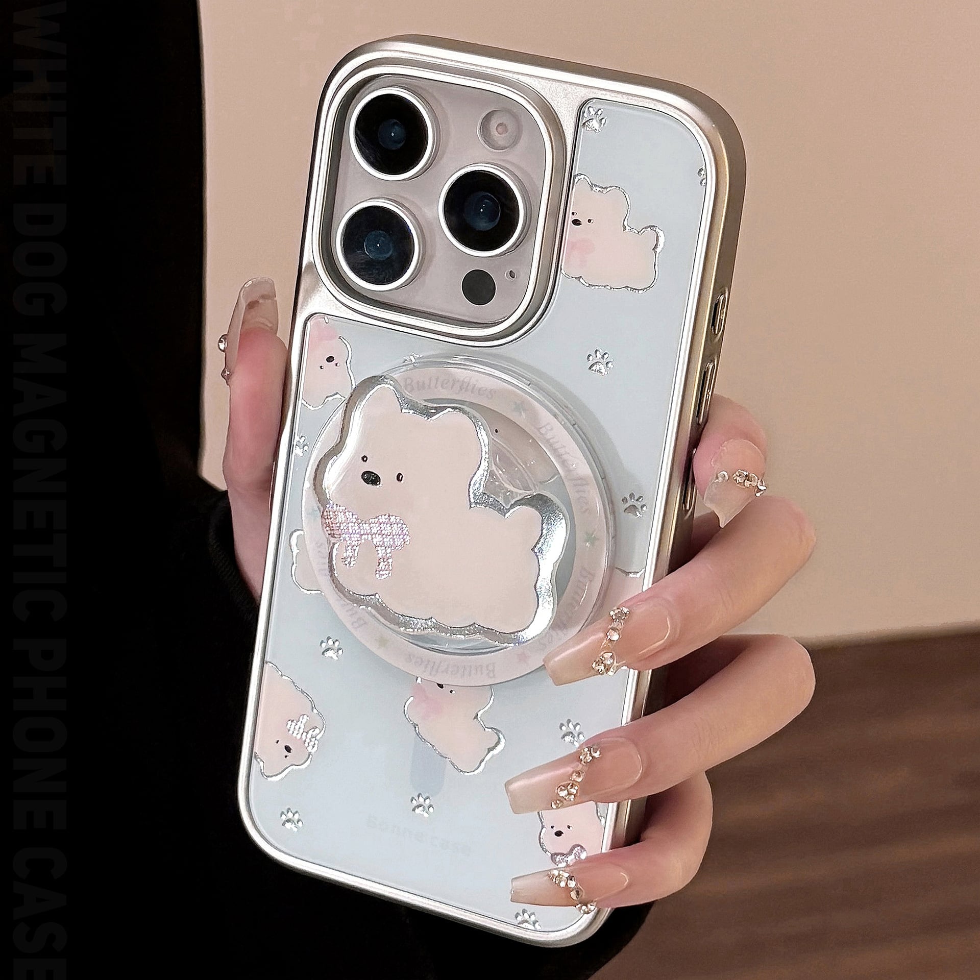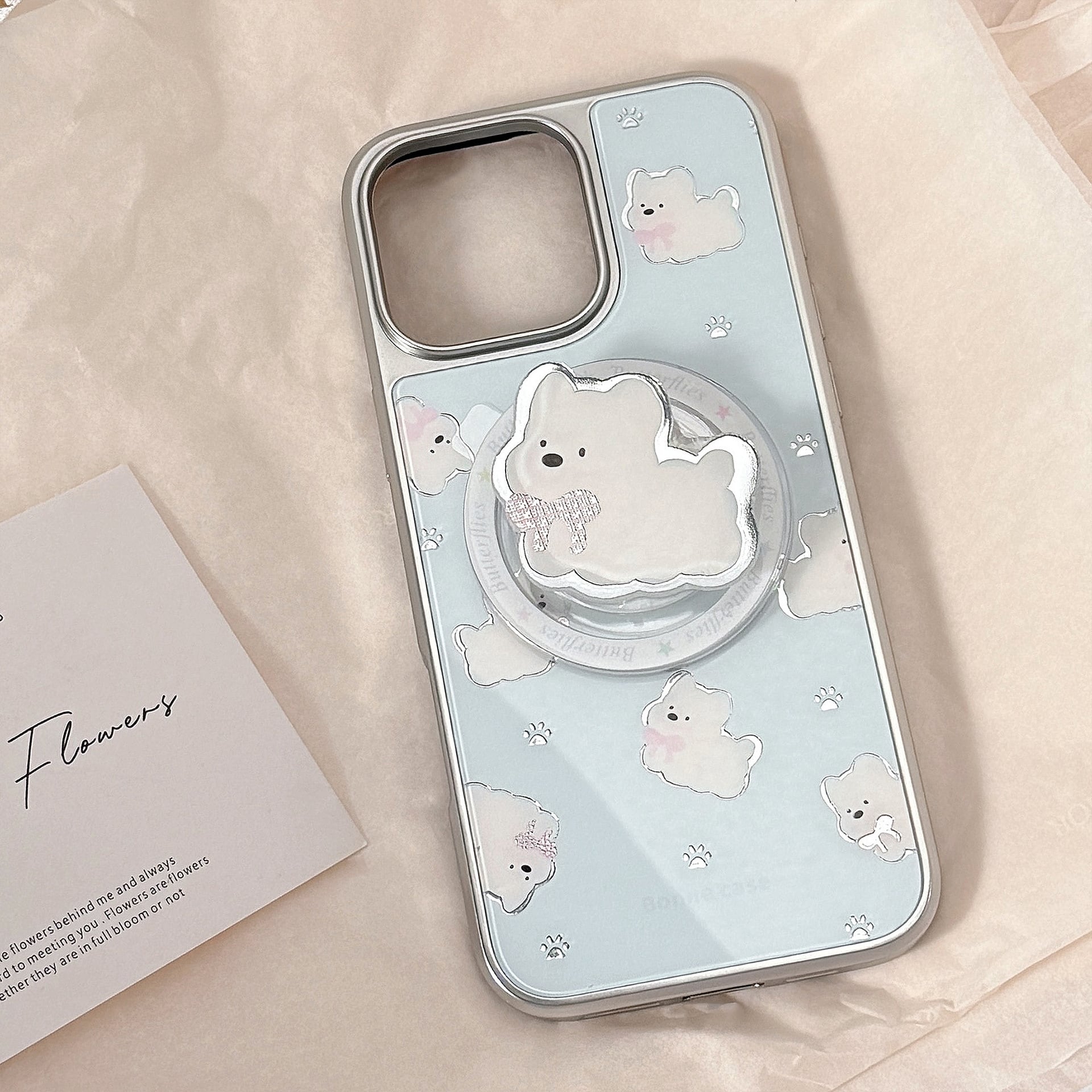 【MagSafe対応】可愛すぎるウエスティ◎マットシルバーフレーム マグネット スマホグリップ おしゃれ 子犬 ウエストハイランドホワイトテリア スマホケース【iPhone17-11まで対応】ND-16570