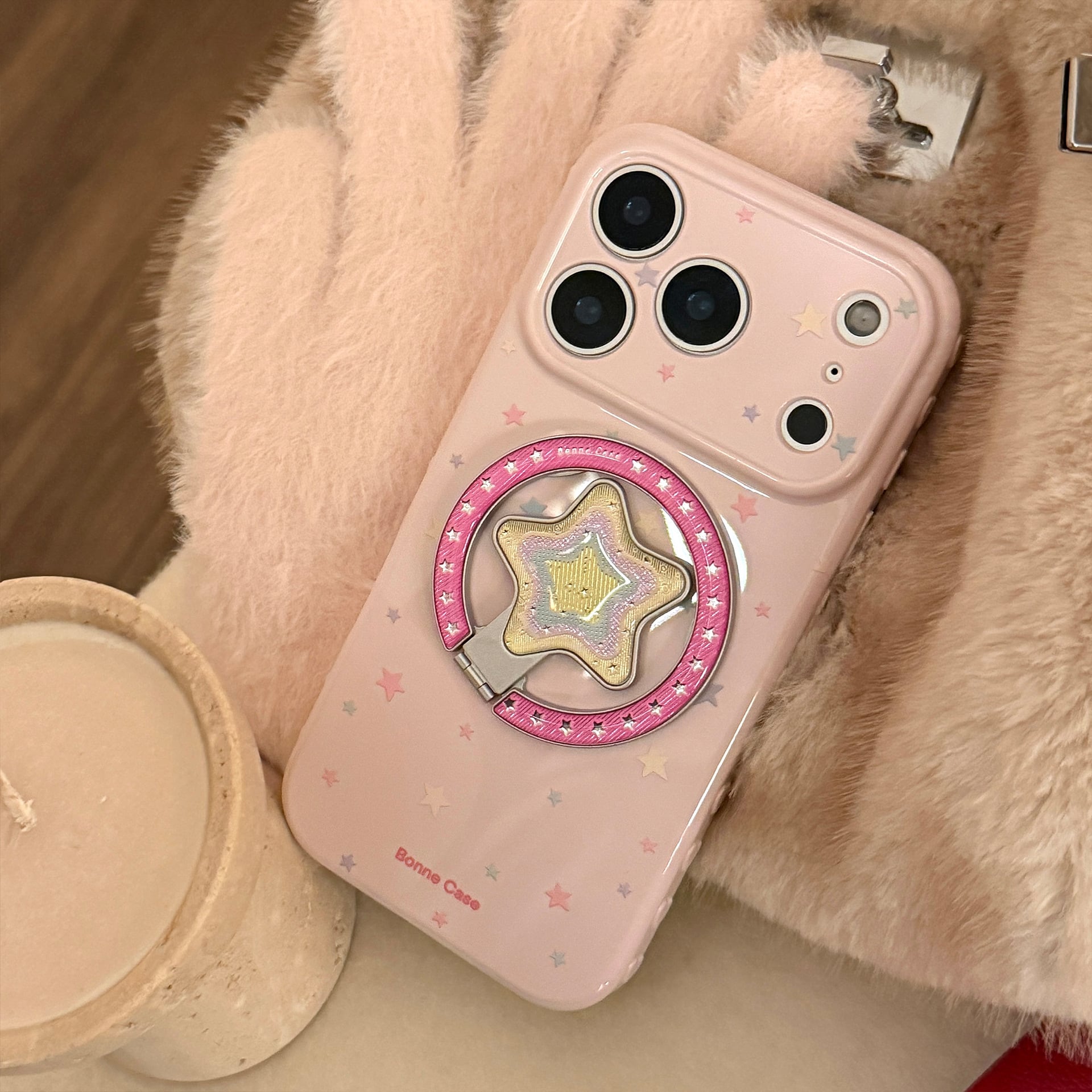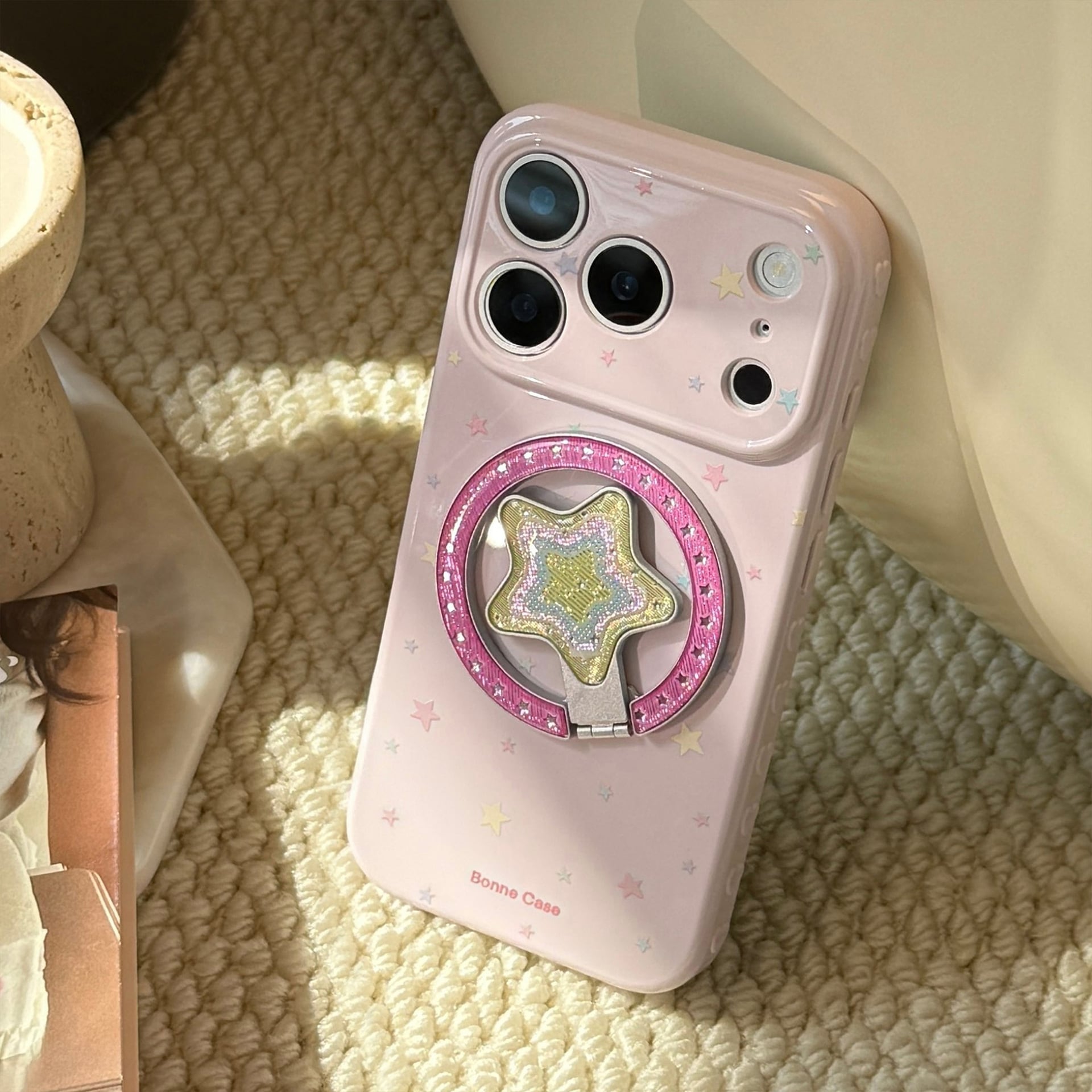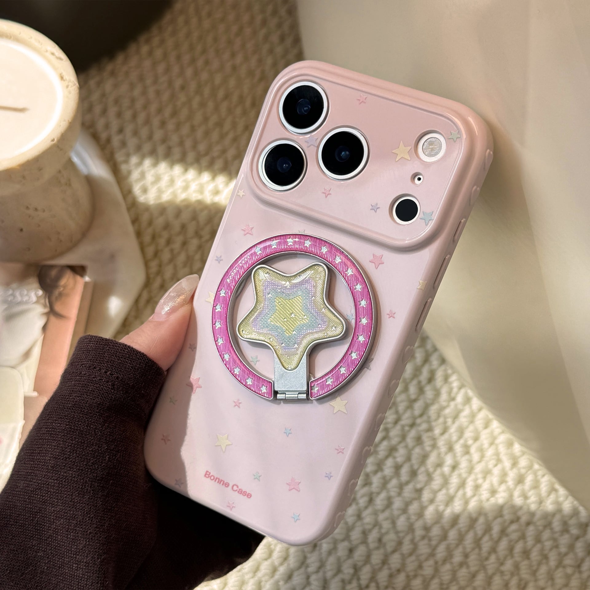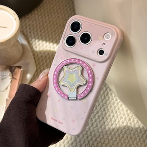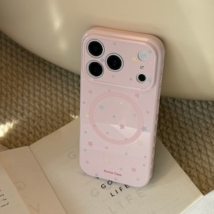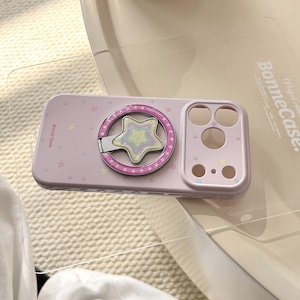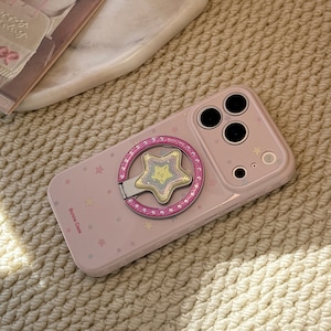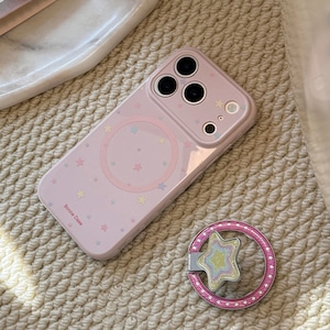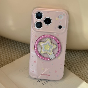 【MagSafe対応】きらめく星々のケース◎かわいい グァバピンク マグネット スタンド スマホグリップ スター柄 スマホケース【iPhone17-11まで対応】ND-16581