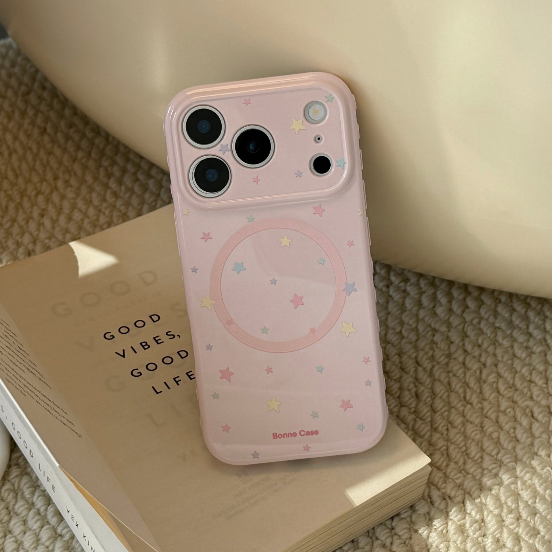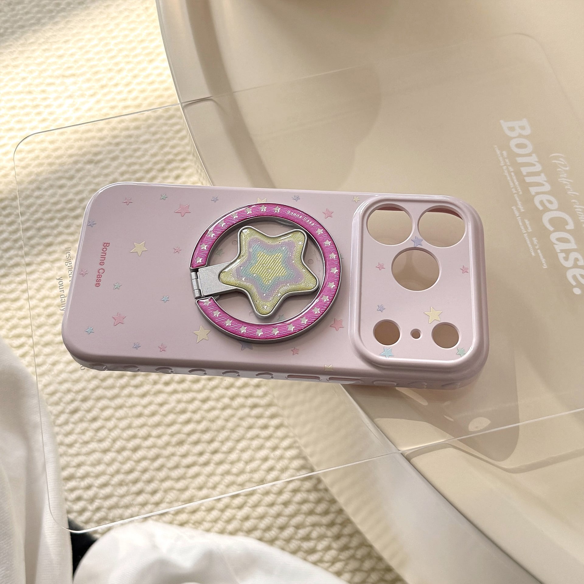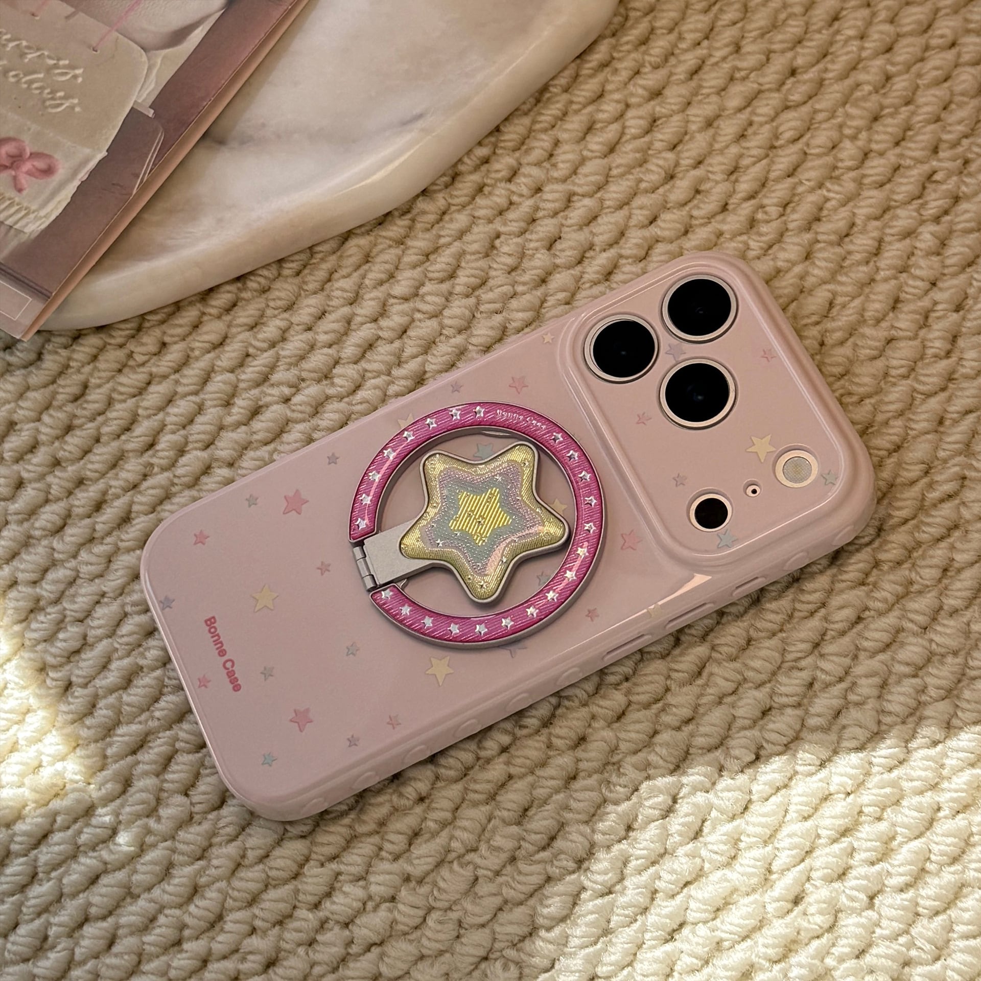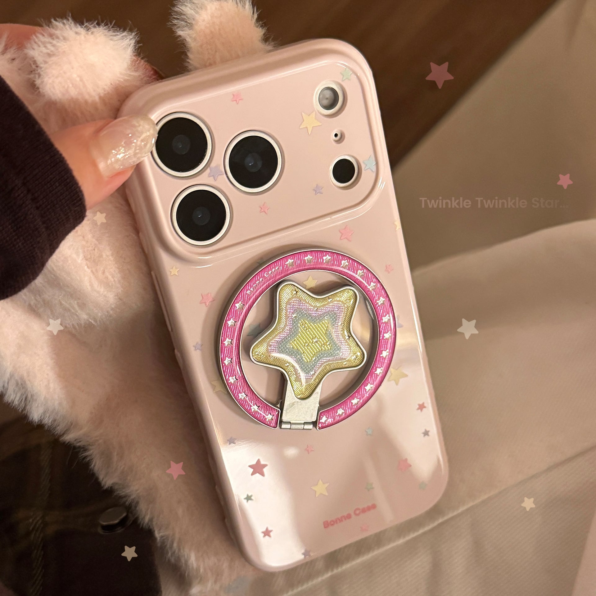 【MagSafe対応】きらめく星々のケース◎かわいい グァバピンク マグネット スタンド スマホグリップ スター柄 スマホケース【iPhone17-11まで対応】ND-16581