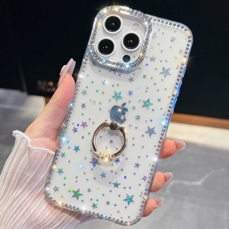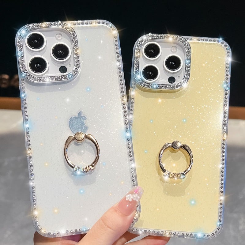 【iPhone17-13対応】ラインストーン華やぐケース◎スマホリング付き 選べる6色 かわいい キラキラ グリッター 韓国 スマホケース ND-16363