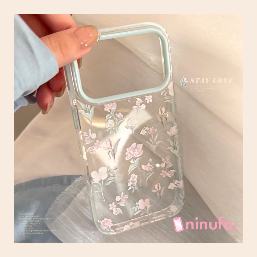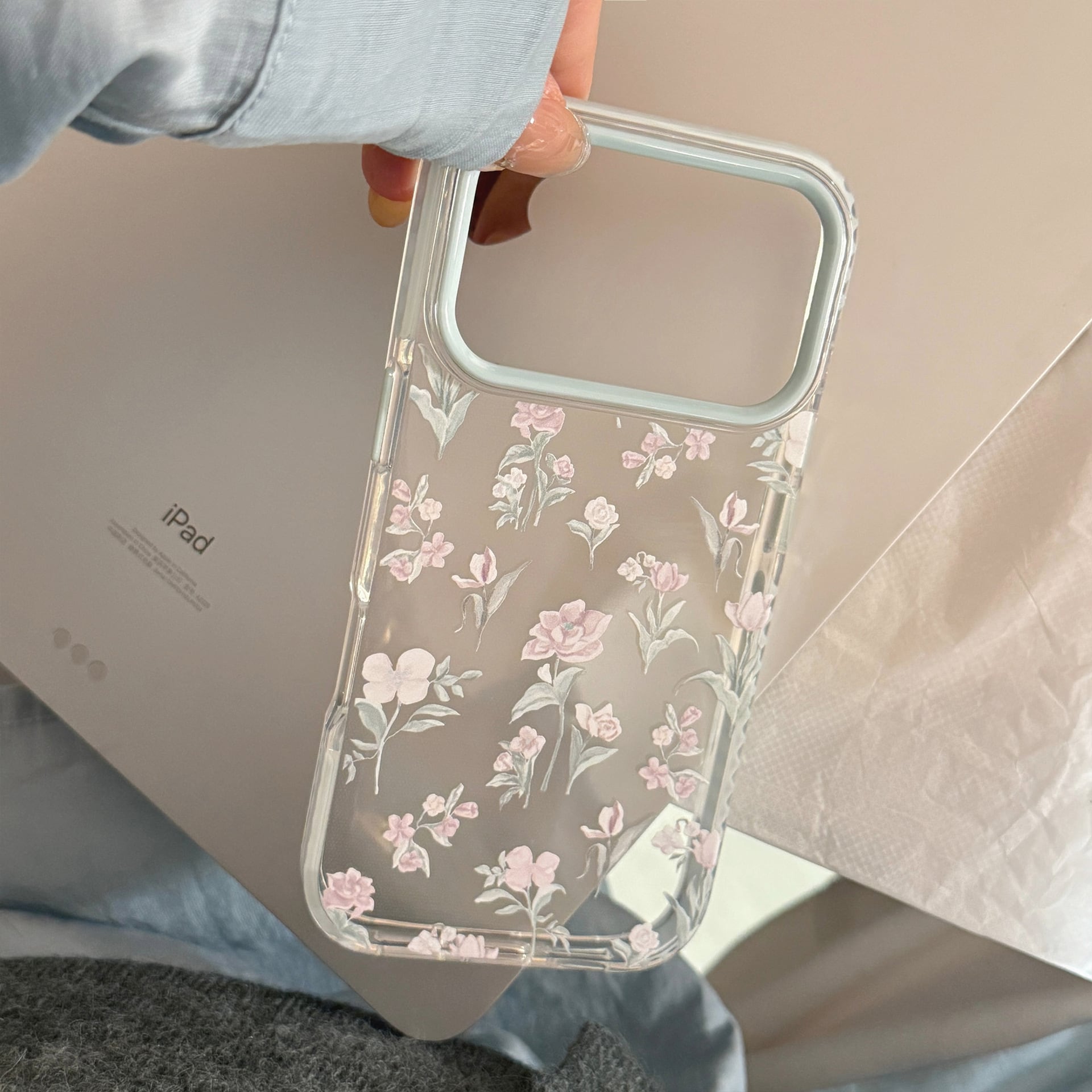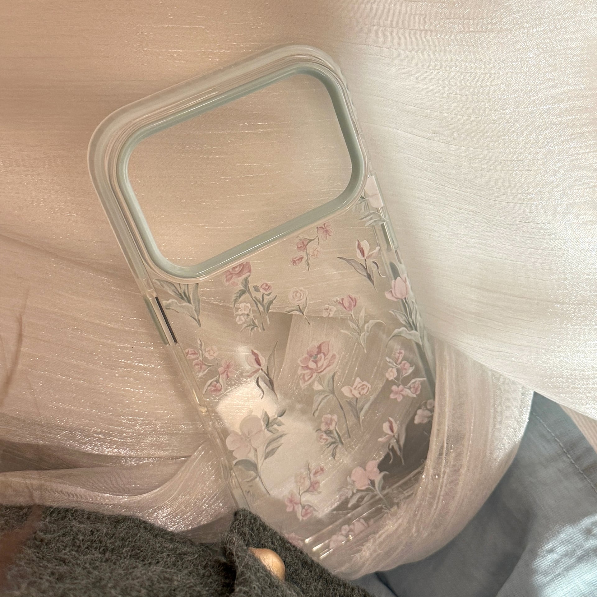【iPhone17-11対応】やわらかな春◎フラワー柄 上品クリアケース 淡色フレーム 花柄 スマホケース ND-16661