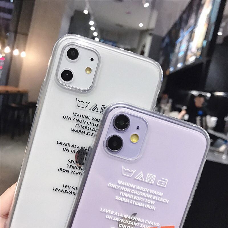 ランドリーシンボルと英文字が可愛いロゴスマホケース。
