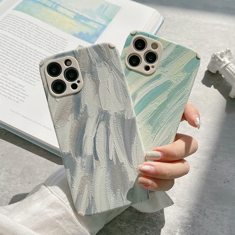油絵みたいなフェザーペイント❤︎ラムスキン 新型 iphone14 対応 シリコン カメラ保護 スマホケース 2color ND-14418