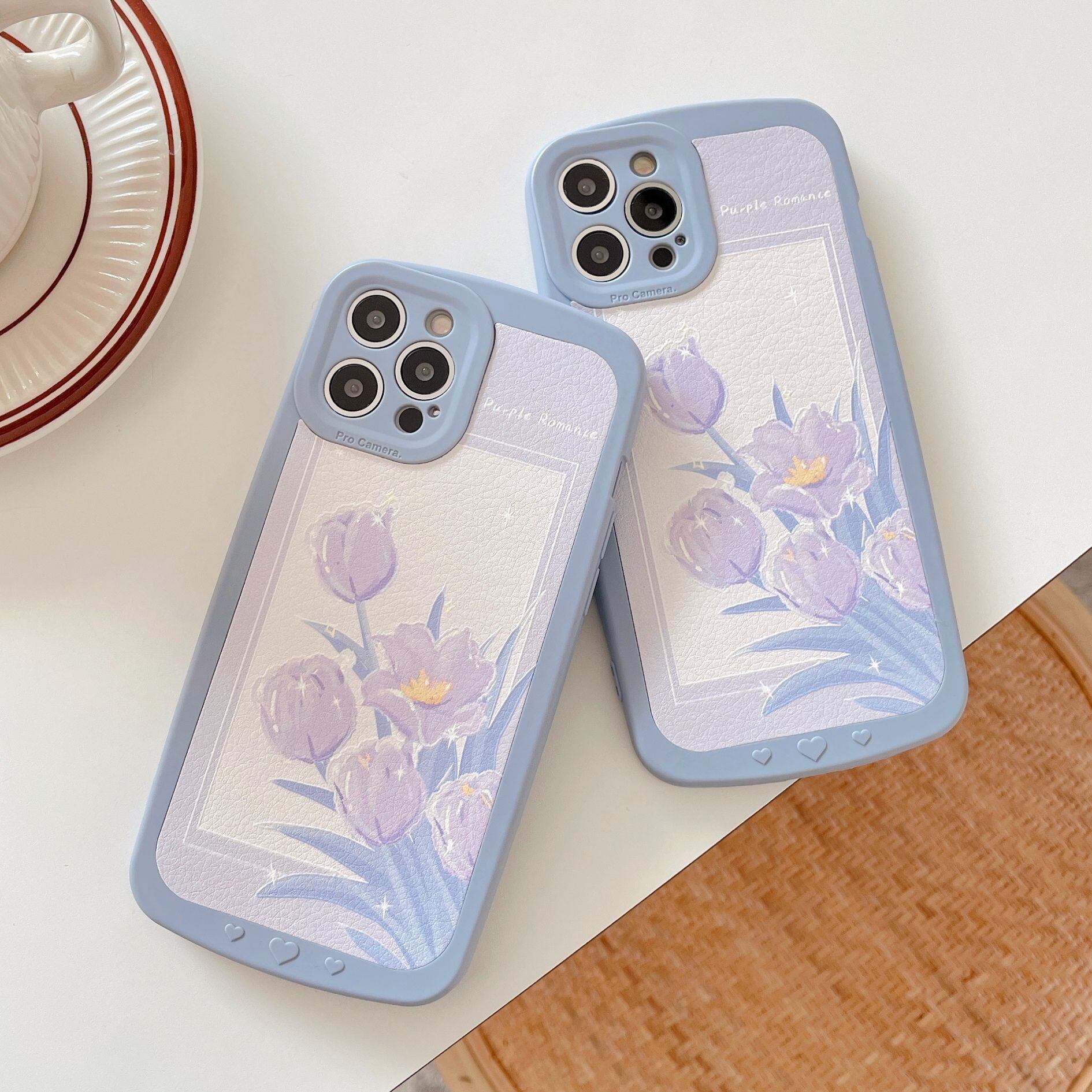 淡い紫色に癒される❤︎かわいい フラワー チューリップ ペールブルー iphone スマホケース ND-14441