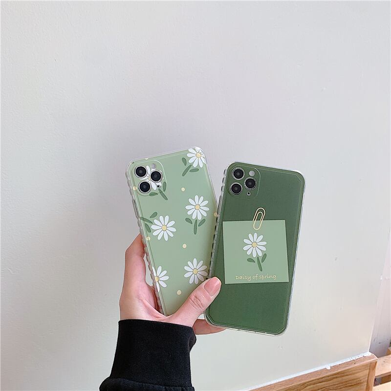 マーガレットに癒される❤︎グリーンベース 花柄 スマホケース 2type ND-14505