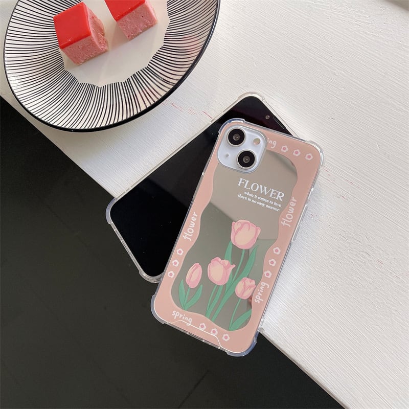 【再販】鏡面タイプで可愛い❤︎春カラー チューリップデザイン スマホケース ND-14511