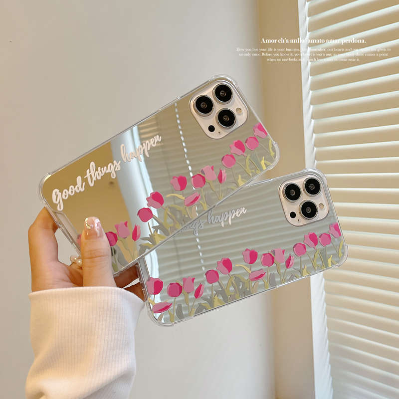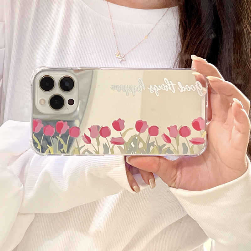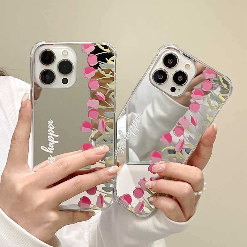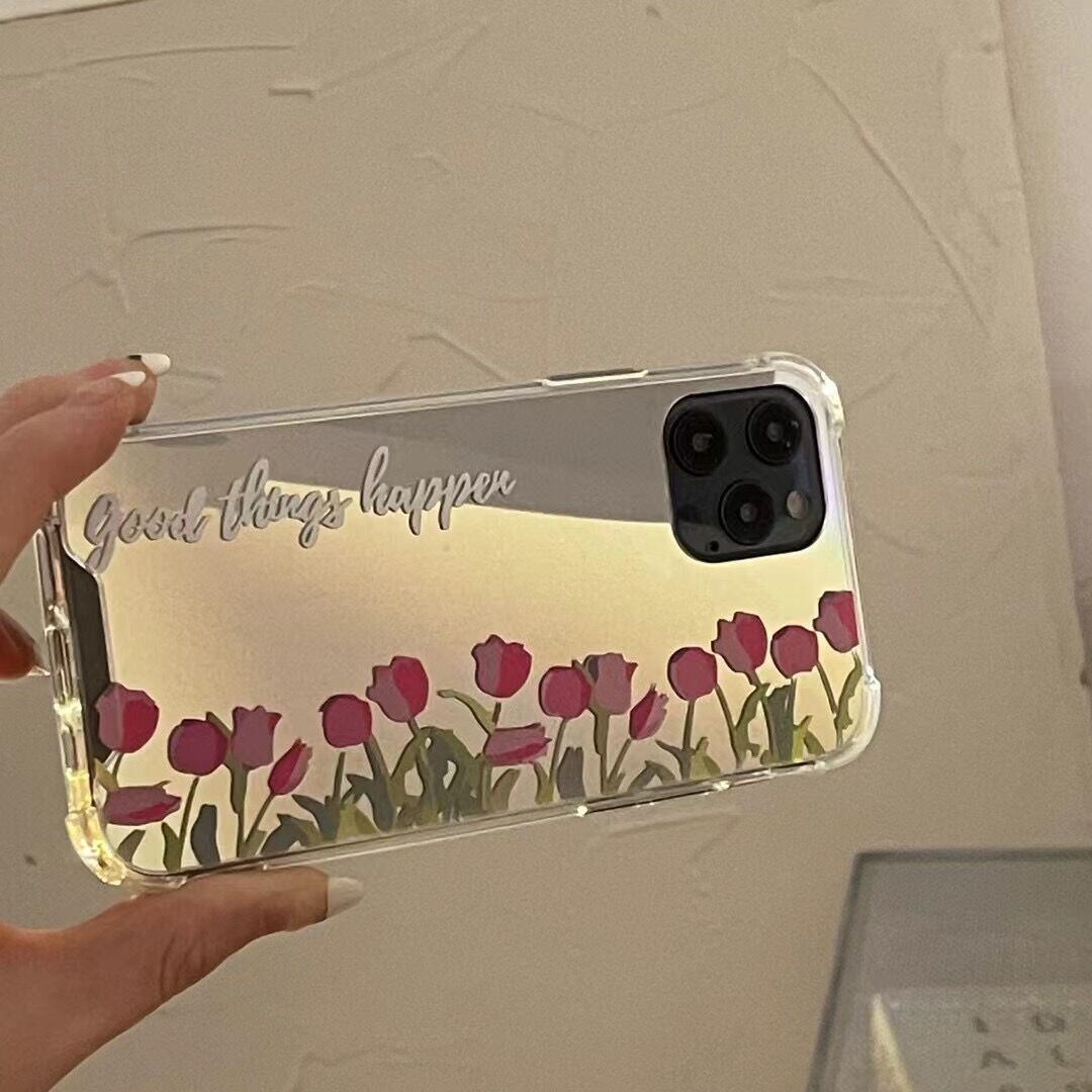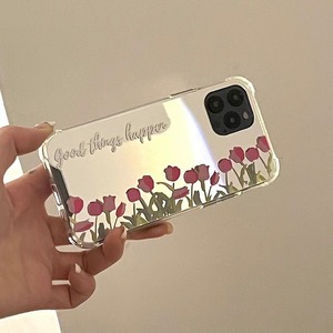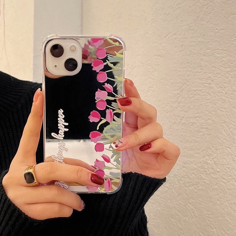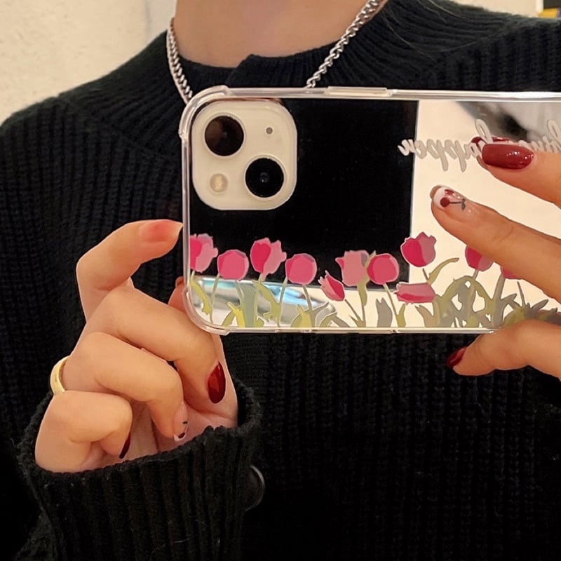 鏡面仕上げが可愛い❤︎チューリップ ミラー フラワー デザイン スマホケース ND-14519