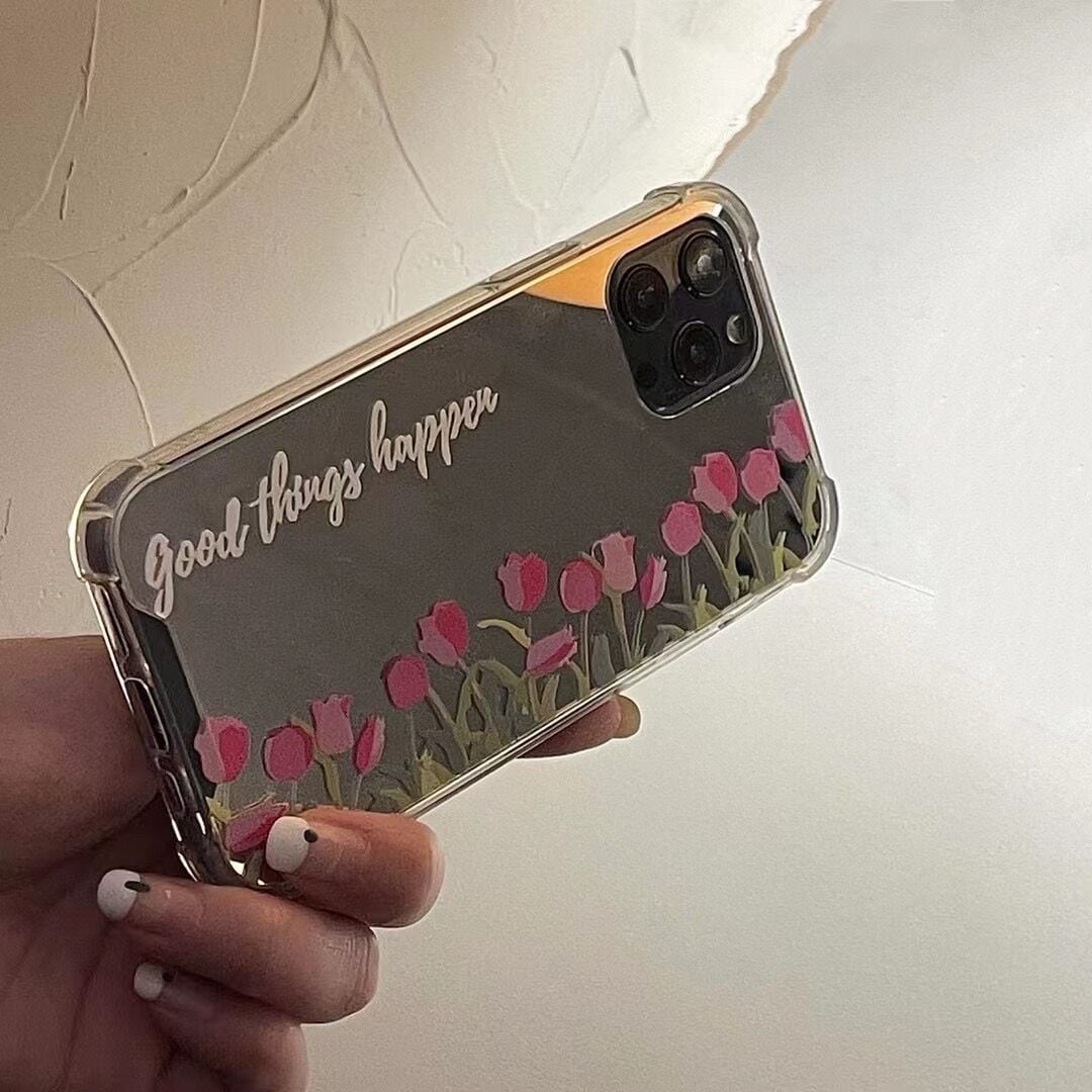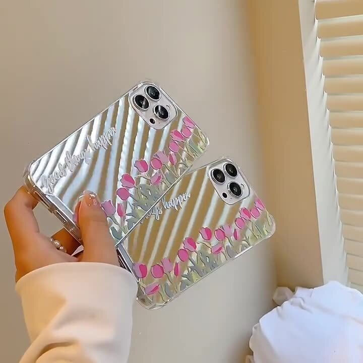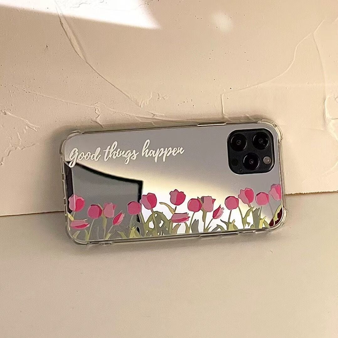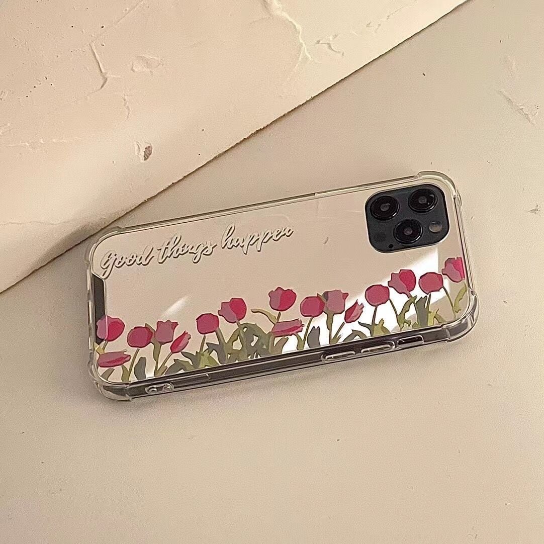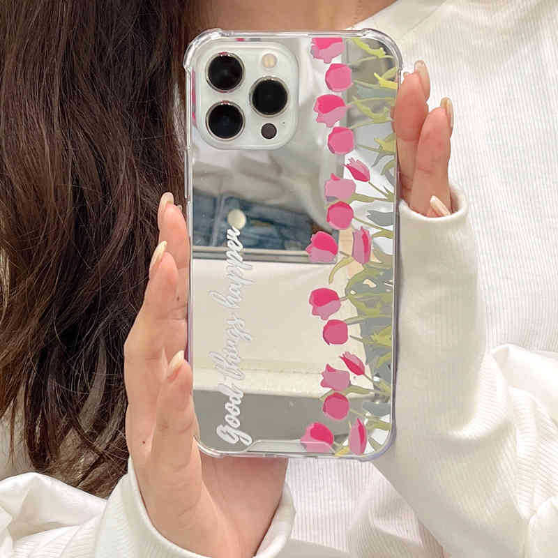 鏡面仕上げが可愛い❤︎チューリップ ミラー フラワー デザイン スマホケース ND-14519