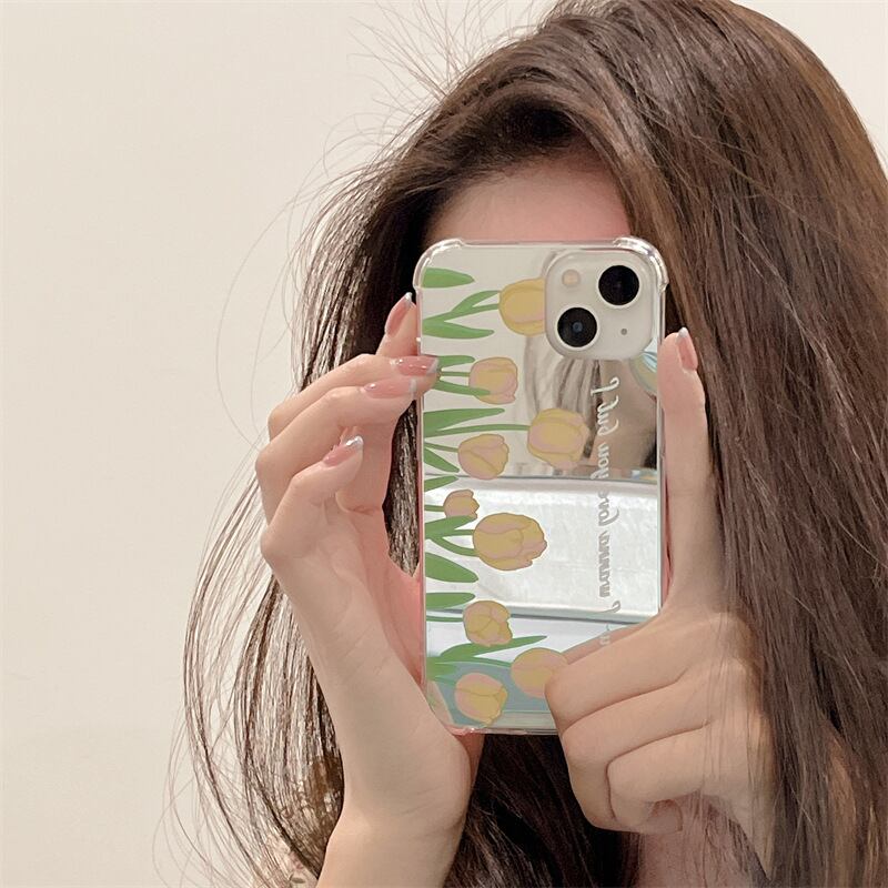 鏡面仕上げが可愛い❤︎チューリップ ミラー フラワー デザイン スマホケース ND-14520