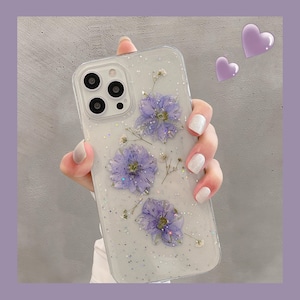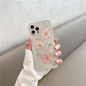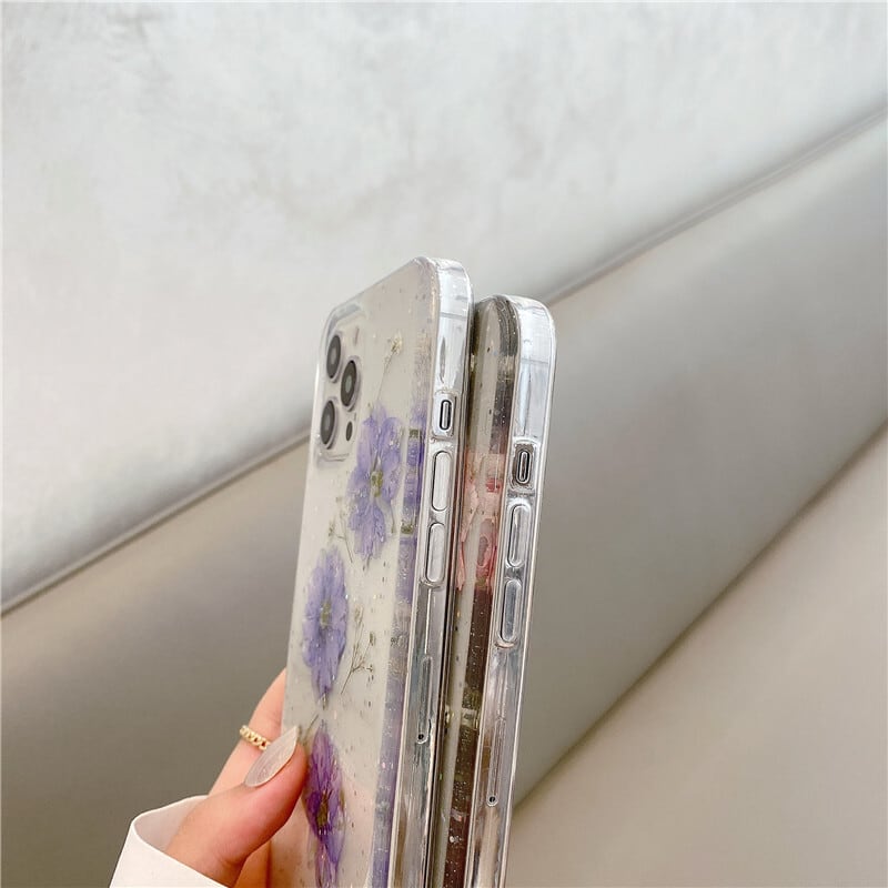 押し花みたい❤︎キラキラ艶 ラメ フラワーデザイン クリア 透明 スマホケース 2color ND-14536