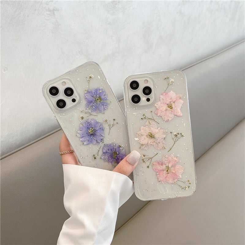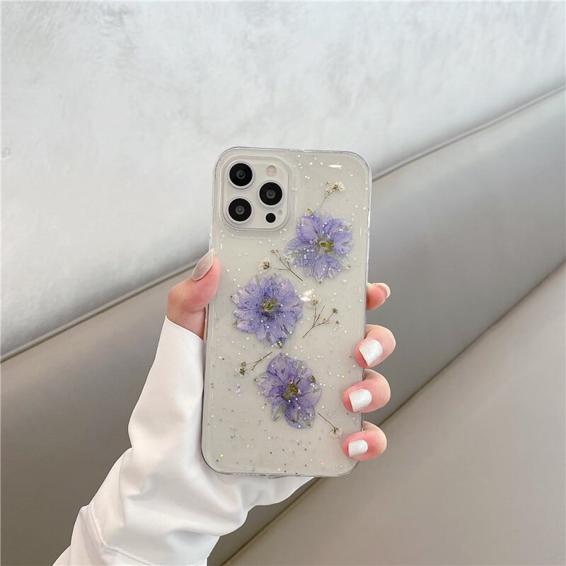 ラメ感のあるクリアベースに押し花風のプリントが可愛い!