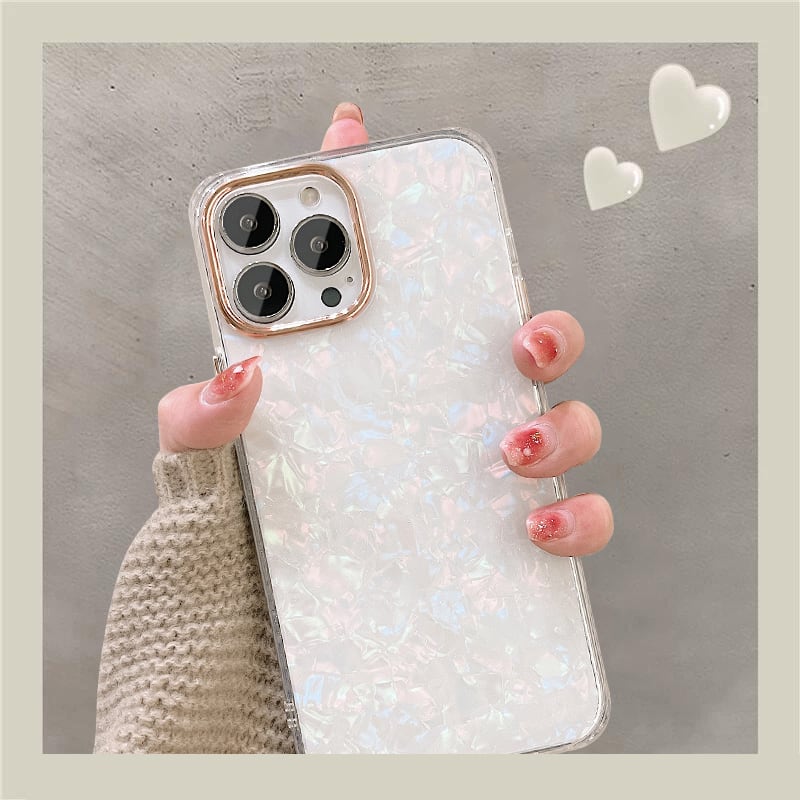 シェルのキラキラ感が美しい◎透明ラメ シェルデザイン クリア スマホケース 2color ND-14539