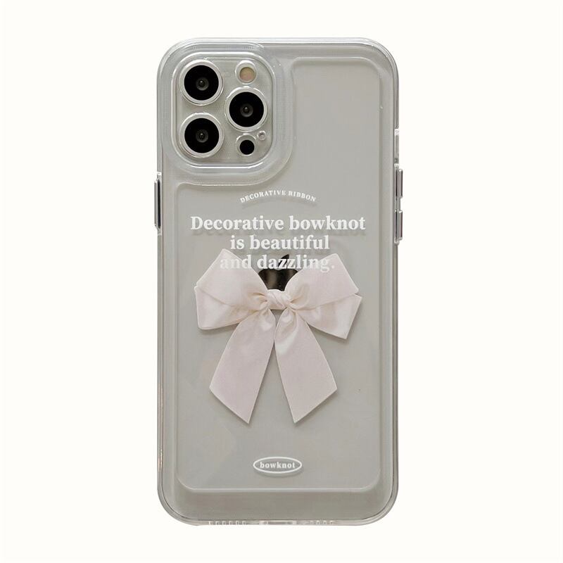 蝶々結びのリボンがお上品❤︎クリア 透明 リボンプリント 英字ロゴ スマホケース ND-14564