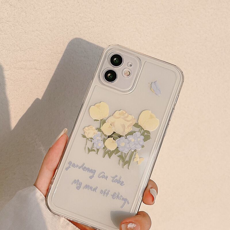 クリアベースに淡色が大人っぽ♡花柄 フラワー プリント iphone14 カメラレンズ保護 かわいい スマホケース ND-14576