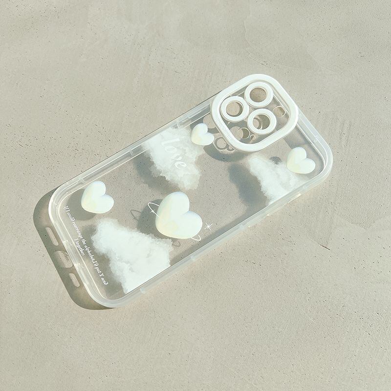 【再販】雲とハートのクリアケース◎透明 ホワイト 耐衝撃 カメラ保護フレーム iPhone14 カバー スマホケース ND-14584