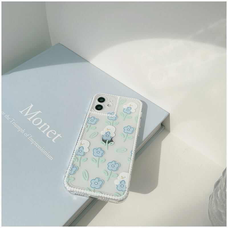 癒し系ケース◎お花とアヒルさん 透明 かわいい iphoneケース クリア 淡色 スマホケース ND-14606