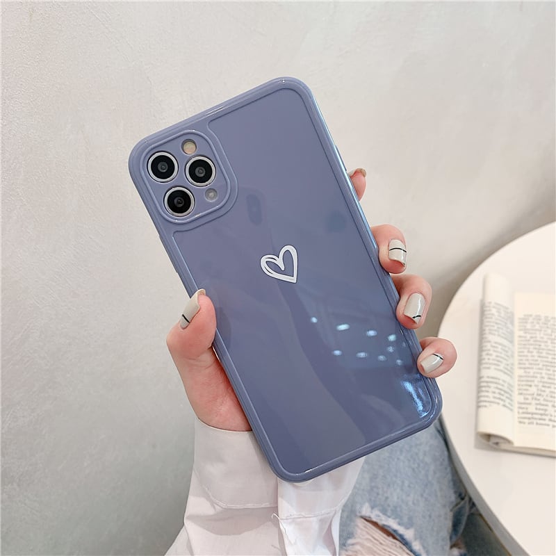 【再販】ハートがちょこん♡シンプルな淡色ケース◎かわいい 光沢感 iphone スマホケース 3color ND-14620