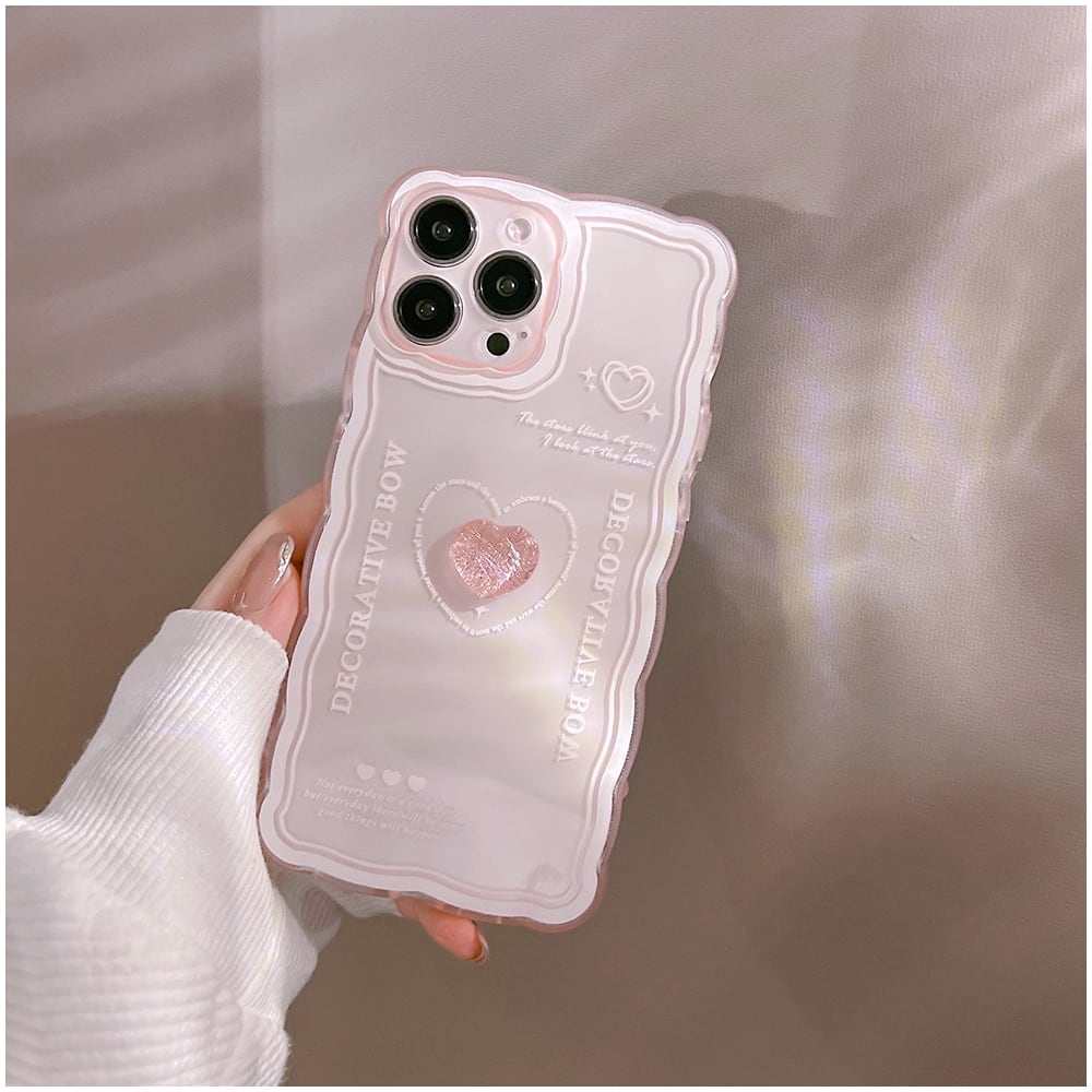 【再再再再再販】人気の組み合わせ♡波フレーム ハート ピンク クリスタル デコ クリアケース 透明 iphone14 スマホケース ND-14625