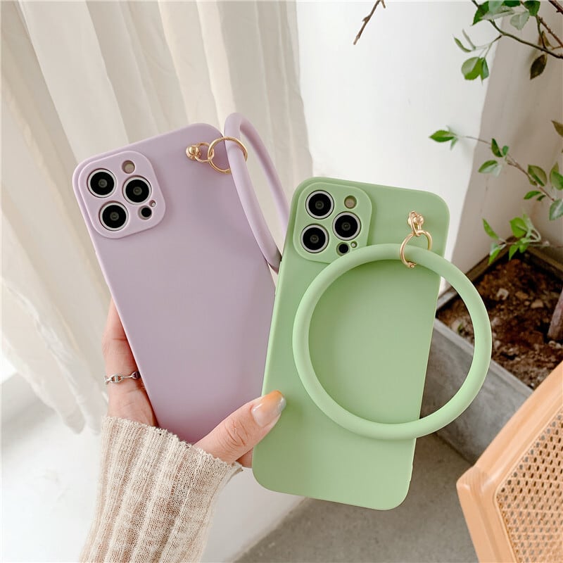 【再販】落下防止ブレスレット付き◎選べるカラー カメラレンズ保護 シンプル 無地 iphone リング バングル ストラップ スマホケース 10color ND-14634