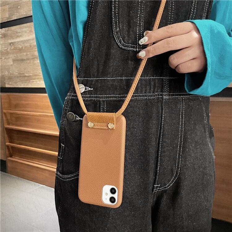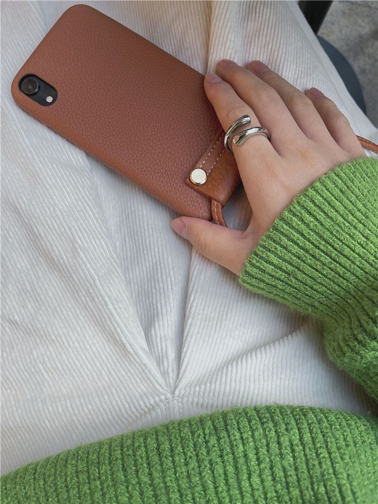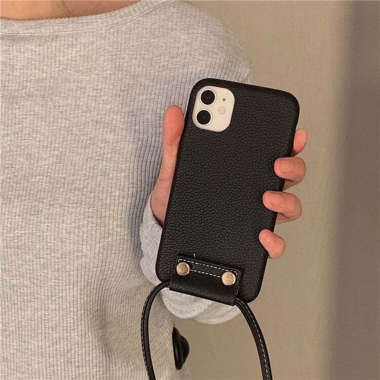 【iPhone15対応】飽きのこないスマホショルダー◎フェイクレザー シンプル 肩掛け 高級感 レザー調 おしゃれ iPhoneケース スマホケース 3color ND-14656【再販】