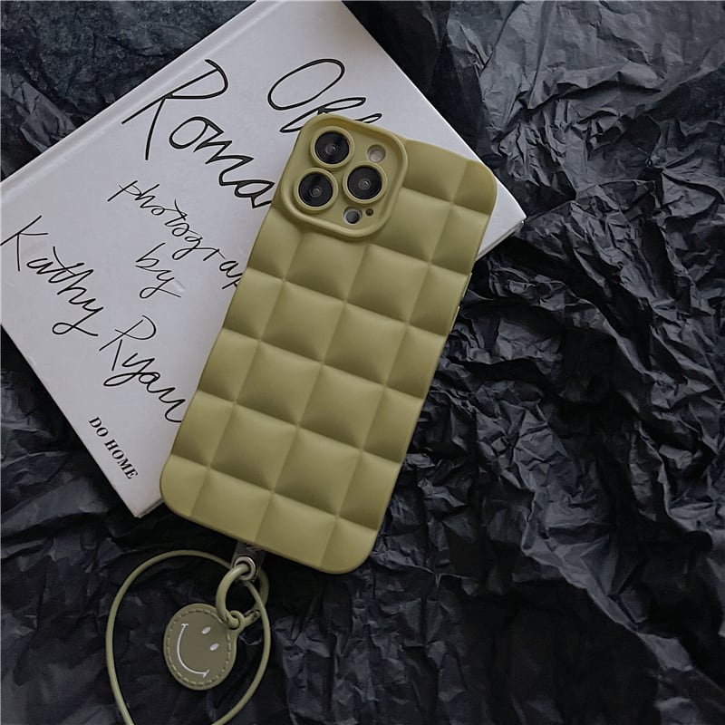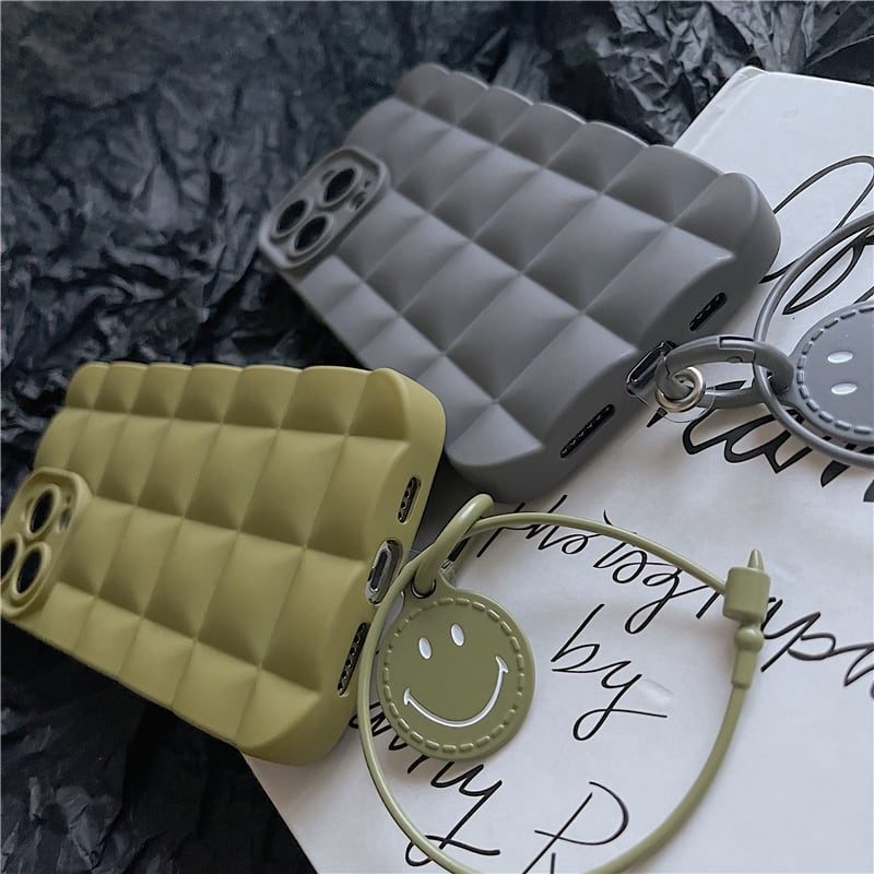 ブロック柄がかわいい!立体 ワッフルデザイン カメラ保護フレーム 耐衝撃 タイルデザイン スマホケース 6color ND-14708