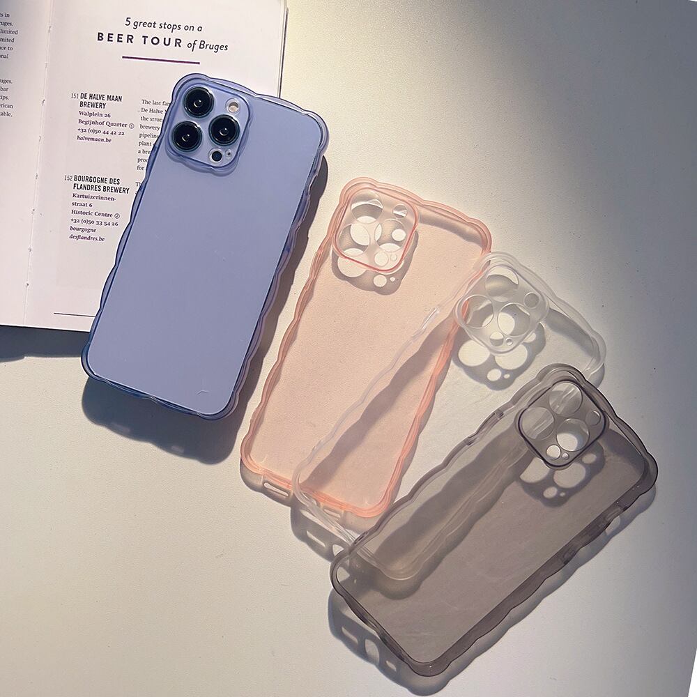 【再販】一目惚れ!大人気 ウェーブフレーム クリアケース 新型 iPhone14 対応 カメラレンズ保護 落下防止 スマホケース 4color ND-14779