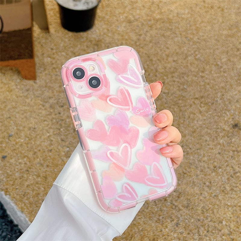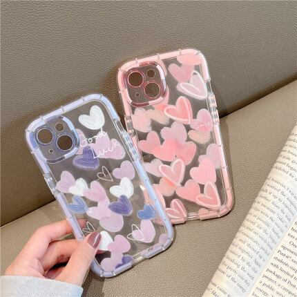 一目惚れ◎蛍光フレーム 大人気 iPhone15 対応 ハート 夜光 クリアケース 落下防止 カメラレンズ保護 耐衝撃 エアクッション 2color ND-14787 【再販】
