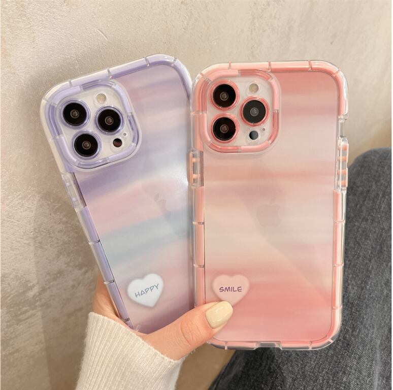 【再販】グラデーションが美しい◎ルミナスフレーム 新型 iPhone14 対応 クリアケース ハート カメラレンズ保護 2color スマホケース ND-14800