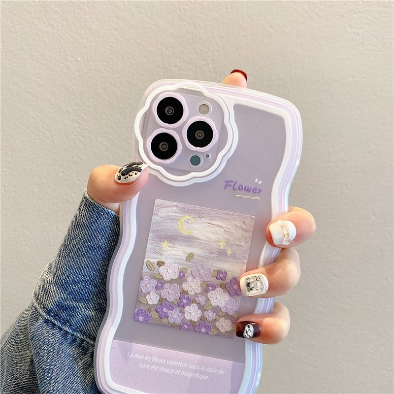淡い紫色がとっても可愛いフラワー柄ケース。