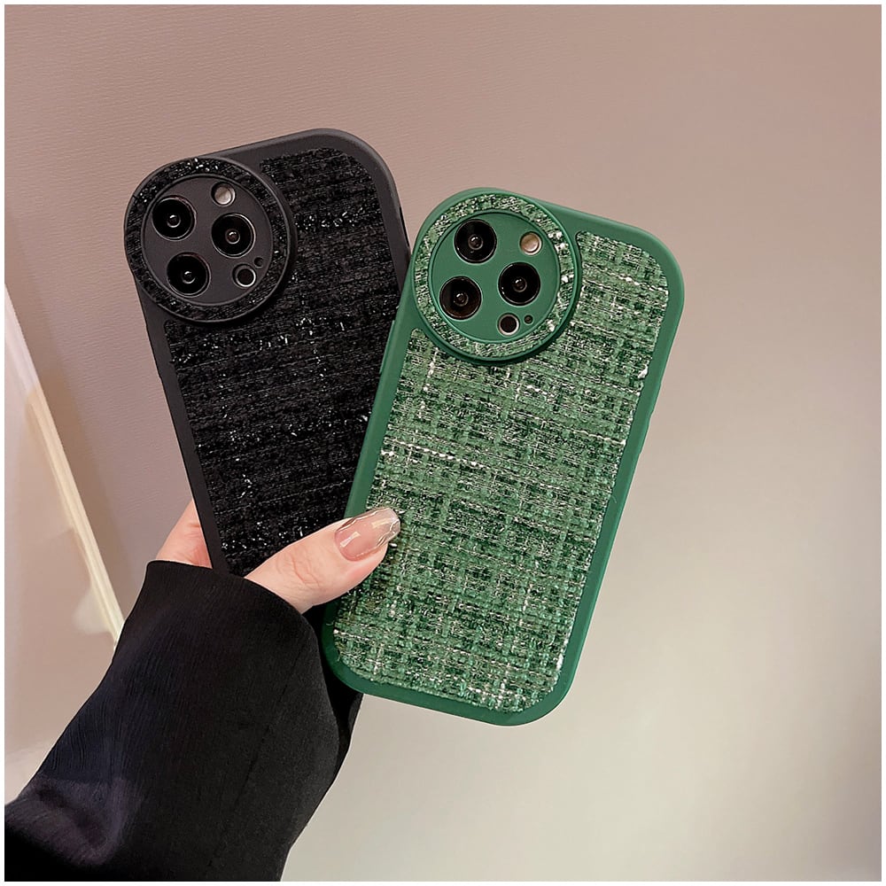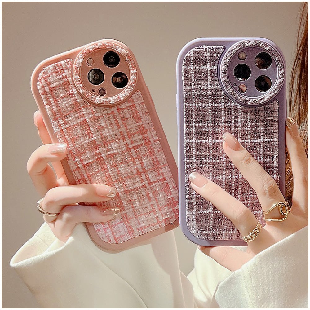 ツイード生地が可愛い◎6色から選べる 新型 iPhone14 対応 耐衝撃 カメラ保護 秋冬 チェック柄 織物 スマホケース ND-14872