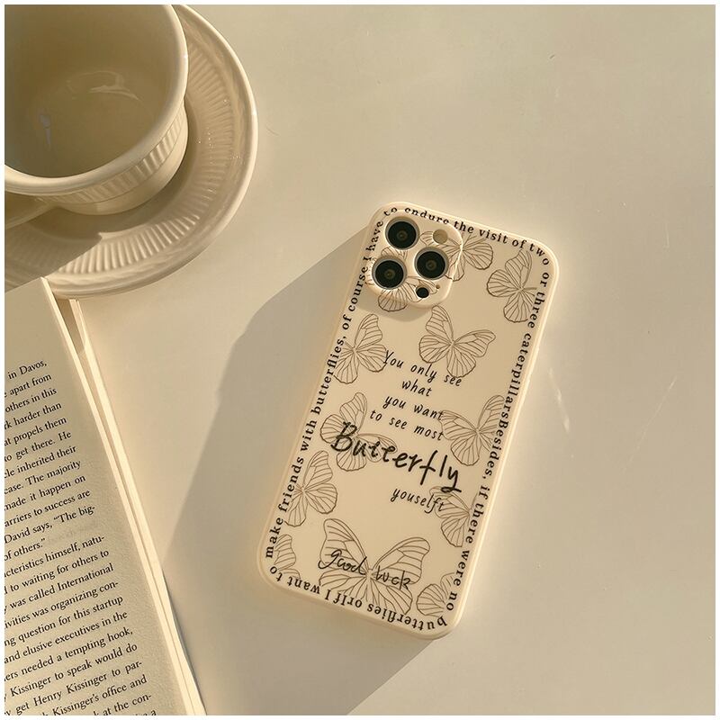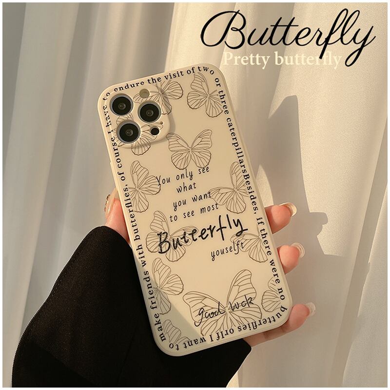 上品なデザイン◎バタフライ 新型 iPhone14 対応 カメラ保護 落下防止 蝶 かわいい 淡色 韓国っぽ スマホケース ND-14874