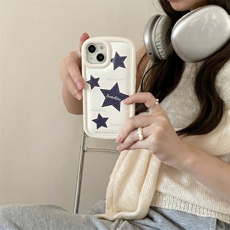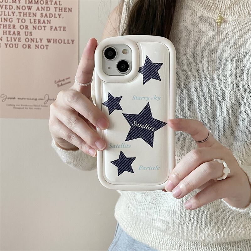デニムステッチ風の星柄が可愛い韓国っぽケース。