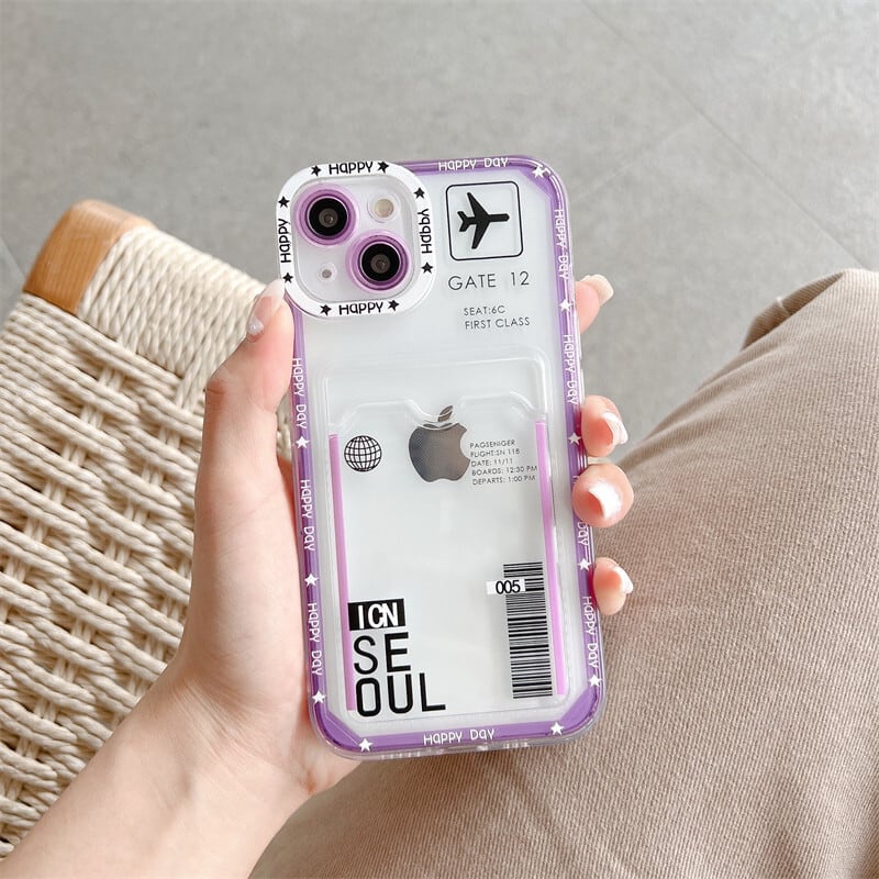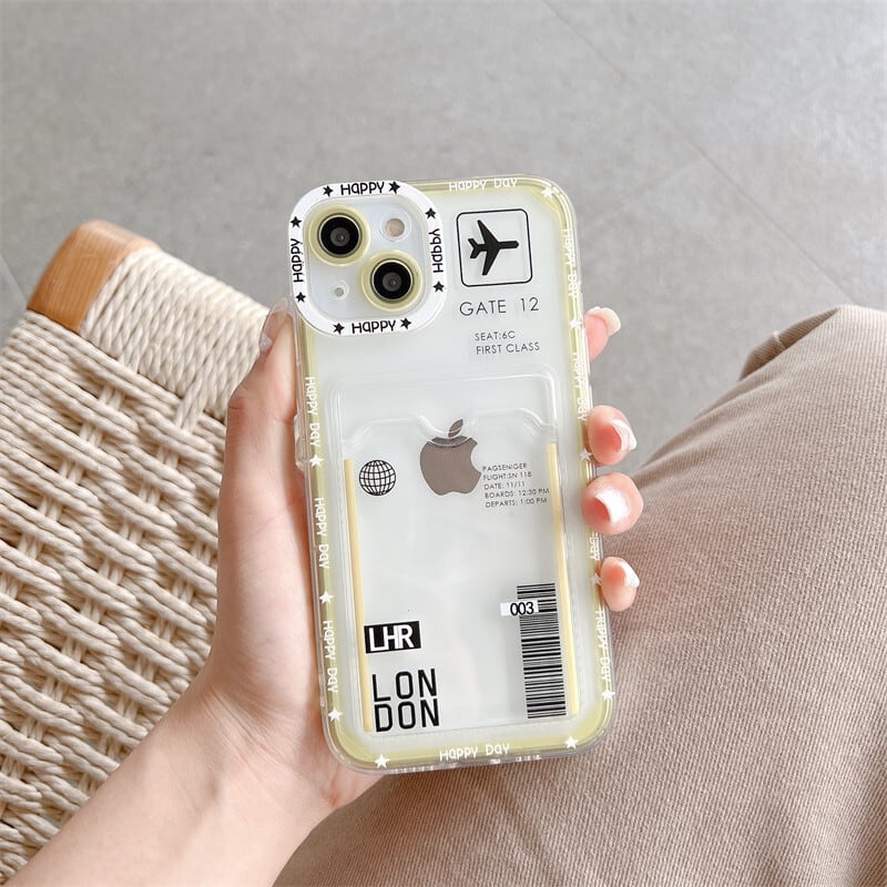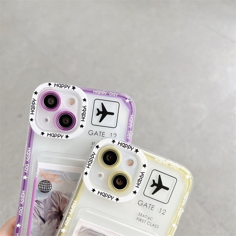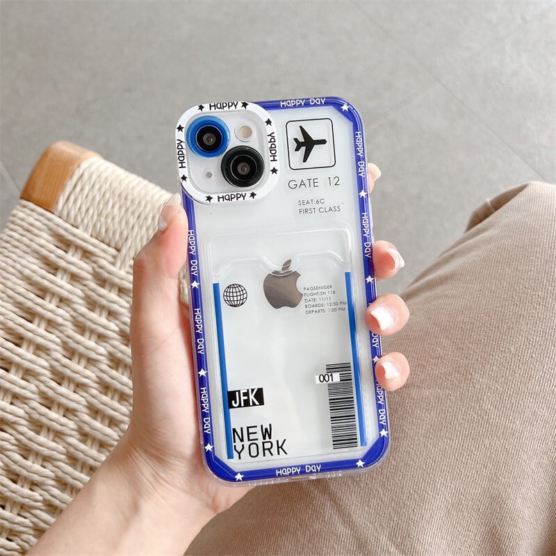 航空チケットみたい◎5色から選べる カードケースつき 新型 iphone14 シリーズ対応 保護フレーム おしゃれ スマホケース ND-14909
