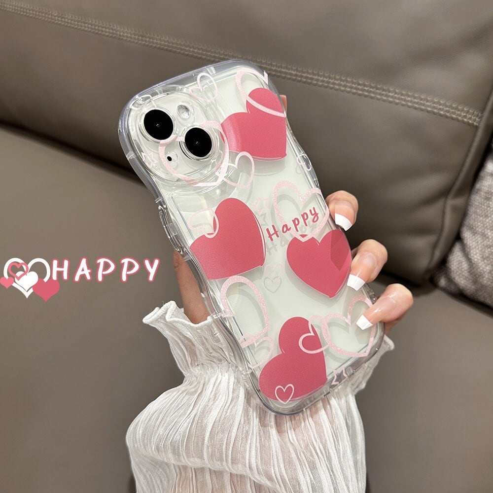 ハートがいっぱい◎かわいい ウェーブフレーム 新型 iphone14 シリーズ対応 ハート柄 星 耐衝撃 エアクッション 韓国っぽ スマホケース ND-14913