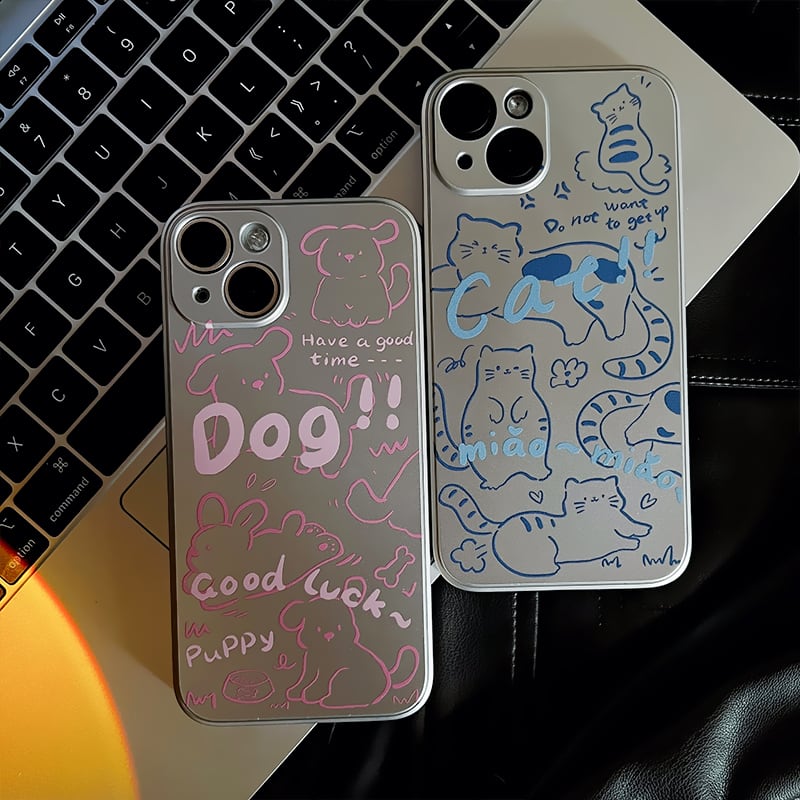 【全機種対応】どっちが好き?犬派 猫派 かわいいシルバーケース◎iPhone15 メタルカバー カメラ保護 2type cat dog スマホケース ND-14922