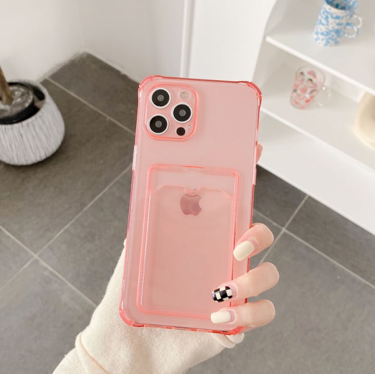 【iPhone16~SEまで対応】推しの写真入れちゃお◎おしゃれ 韓国っぽ カードケース付き カラークリアケース かわいい 透明 推し活 スマホケース 6color ND-15150