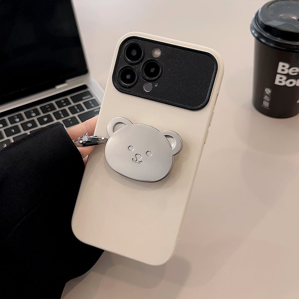 【新型iPhone15対応】シルバーベア◎クマさん ハンドグリップ おしゃれ シンプル カメラ保護フレーム かわいい スマホケース ND-15192