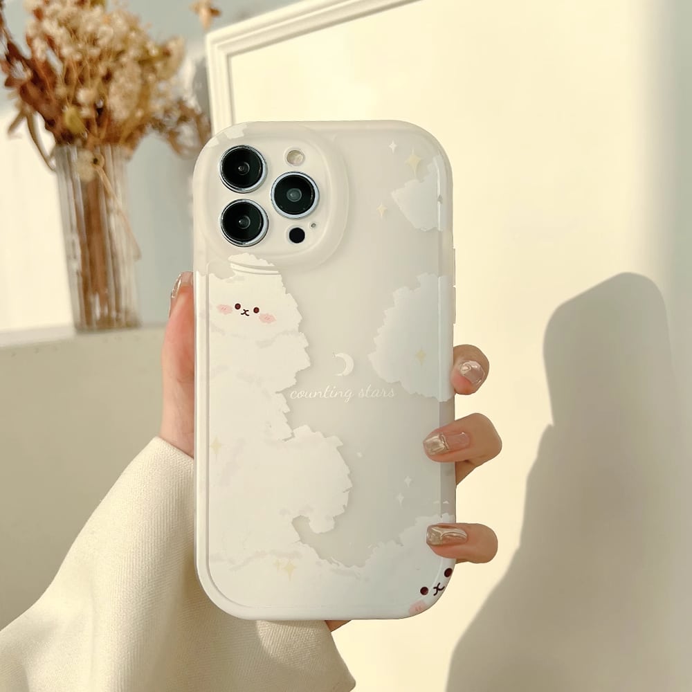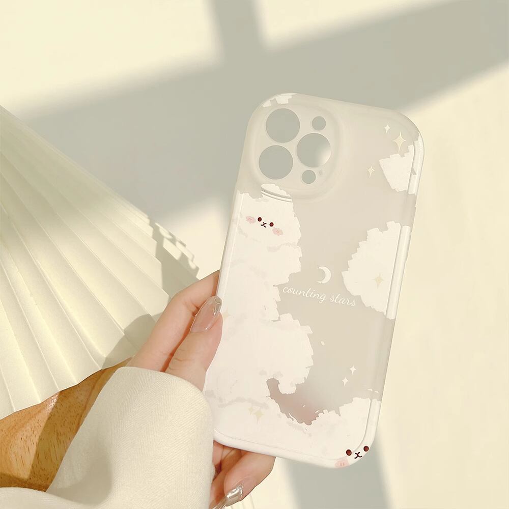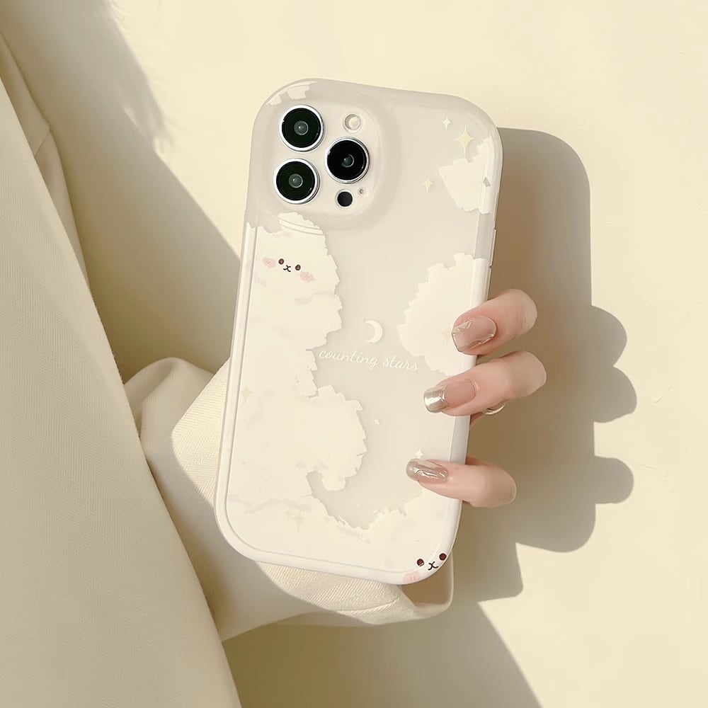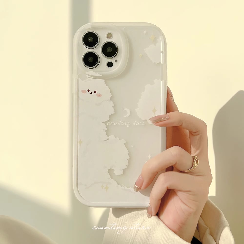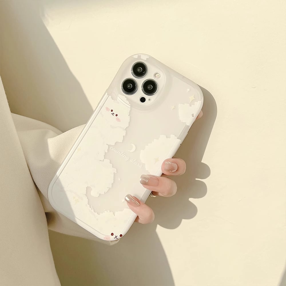【iPhone全機種対応】くも×くま◎可愛い ふわふわ クマさん 半透明ケース カメラ保護フレーム iPhone15 韓国っぽ かわいい ホワイト クラウド ベア スマホケース ND-15203