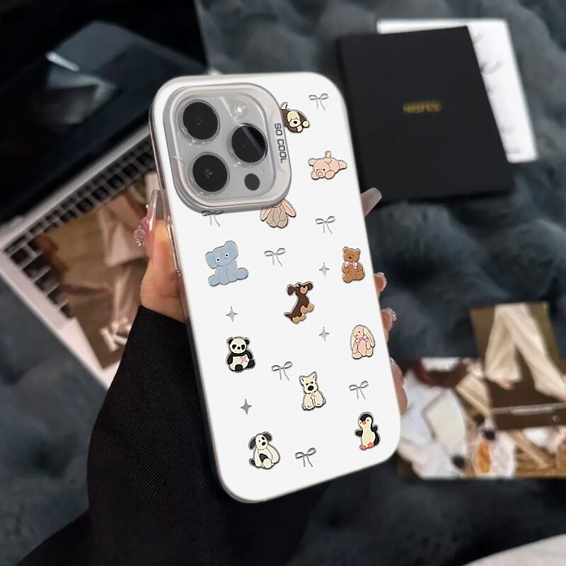 【iPhone15対応】アニマル大集合◎かわいい 動物たち メタルフレーム リボン マスコット 蝶々結び スマホケース ND-15263