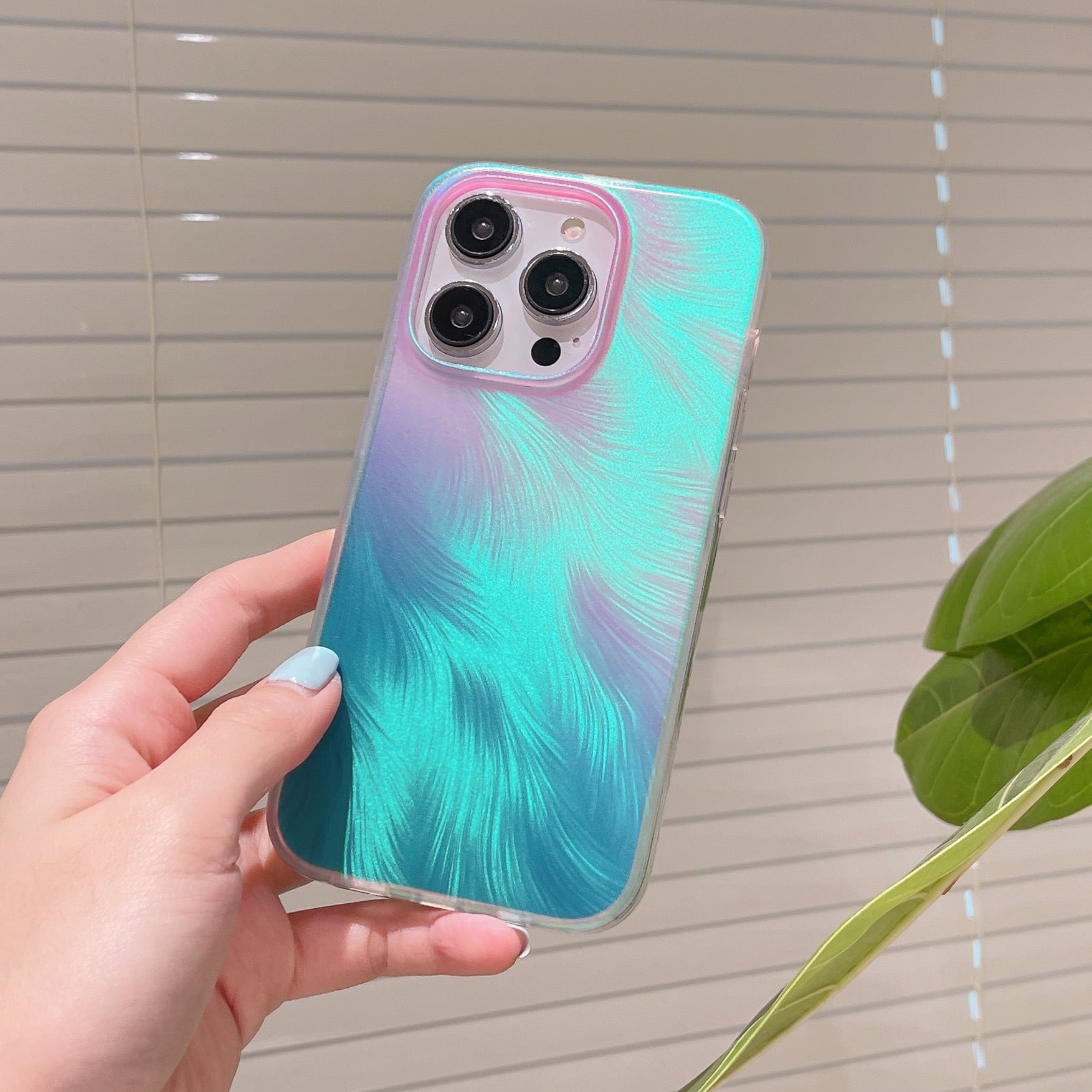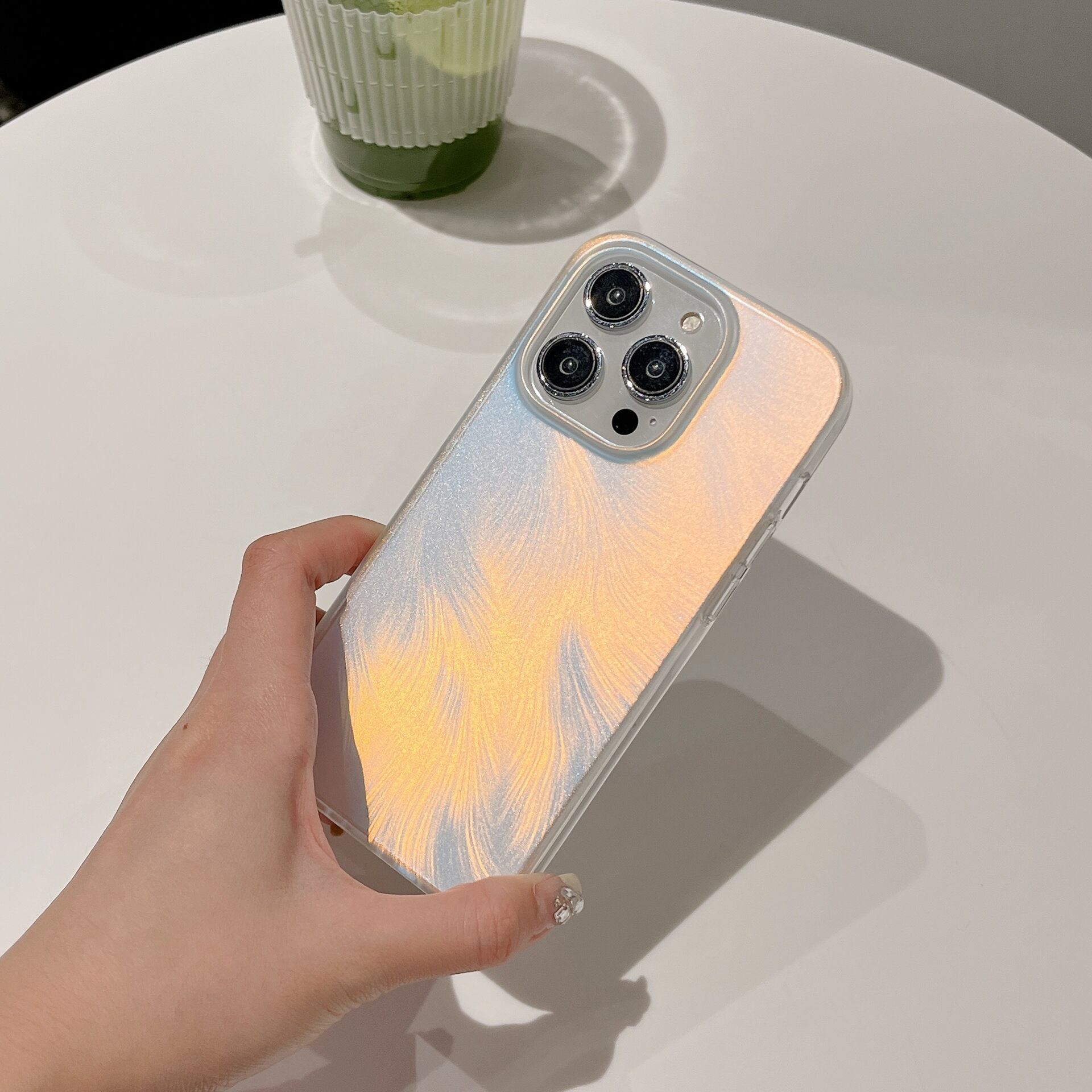 【iPhone15シリーズ対応】角度によって色変わる!オーロラフェザー◎半透明ケース 4色から選べる 羽根デザイン スマホケース
