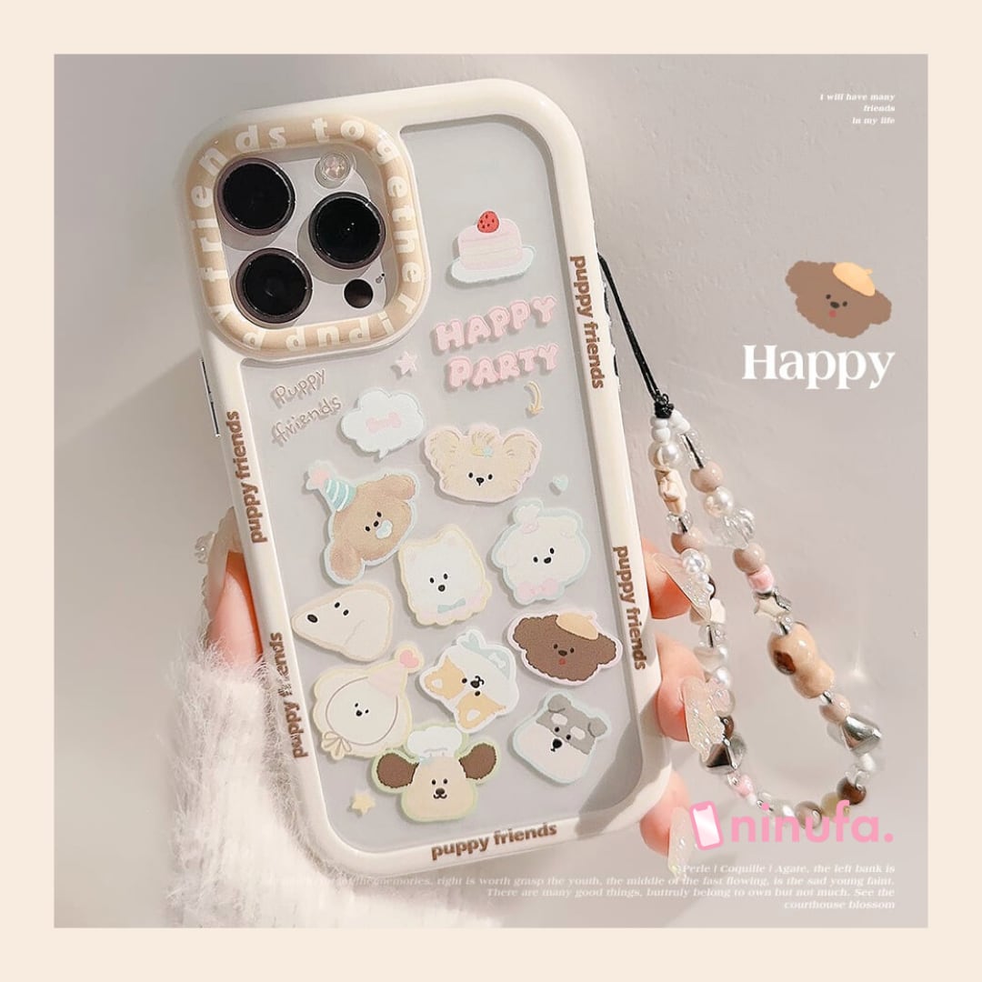 【iPhone17~XR対応】ラテカラーがお上品◎ワンちゃん大集合 パピー クリアケース ストラップ MagSafe 韓国っぽ かわいい 犬 スマホケース ND-15378