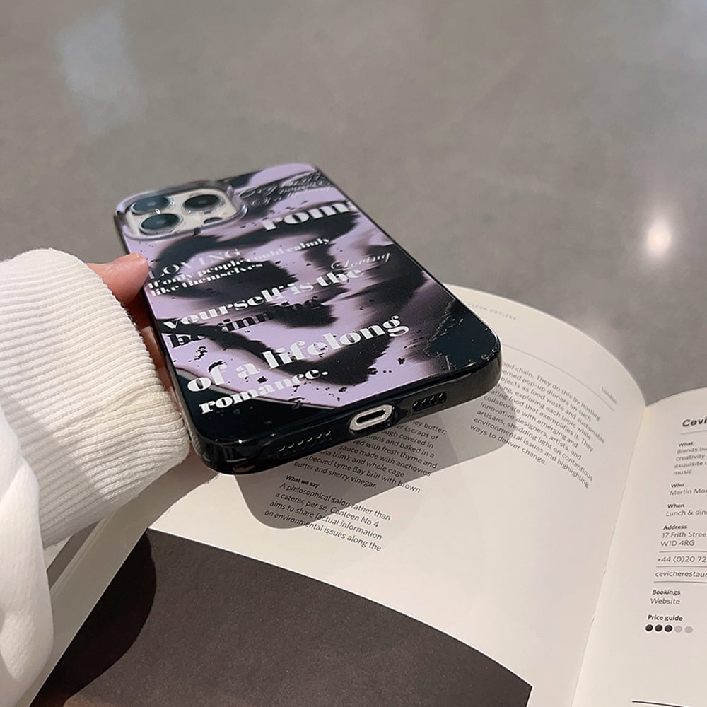 ホワイトの横文字が並んだオシャレな韓国風のケースです。