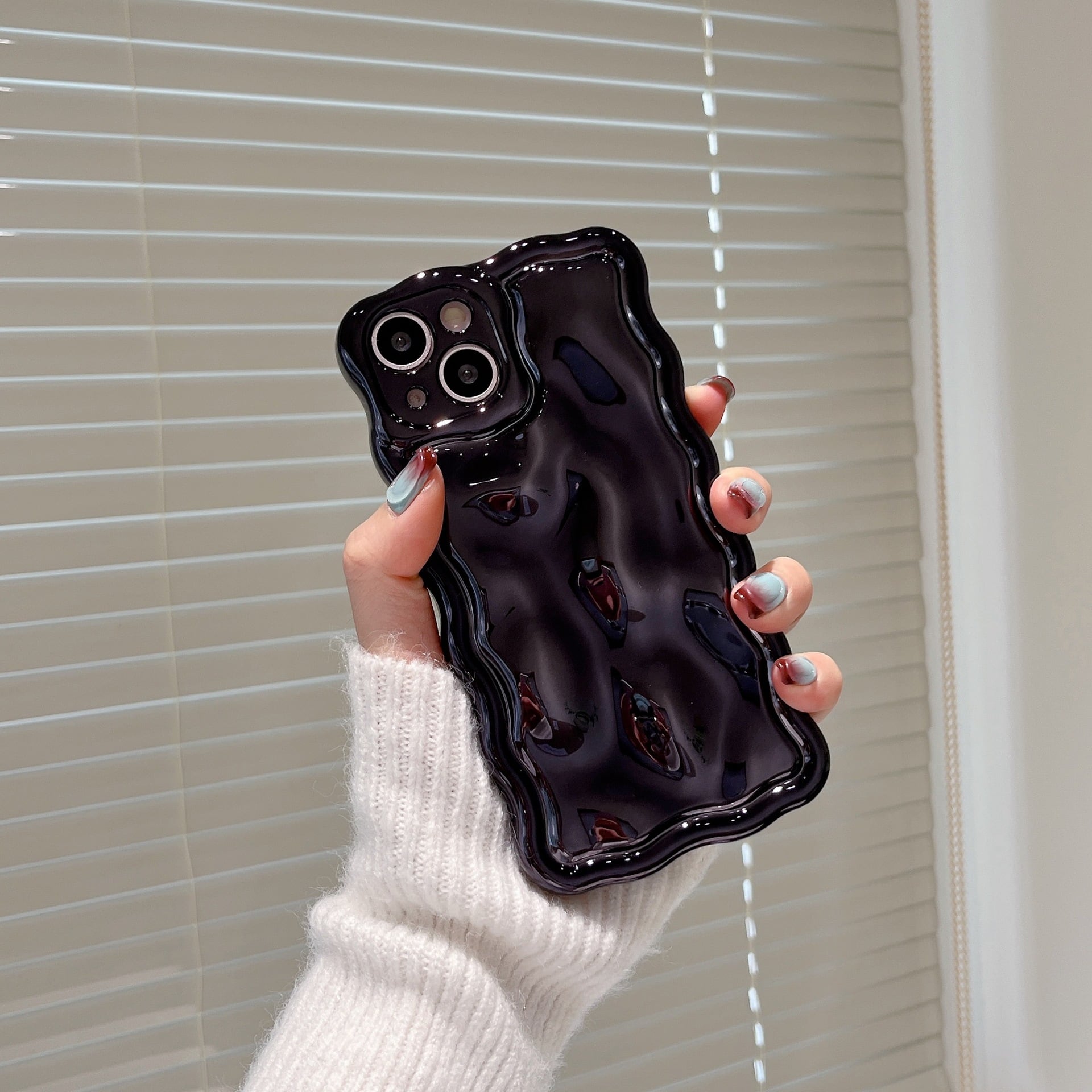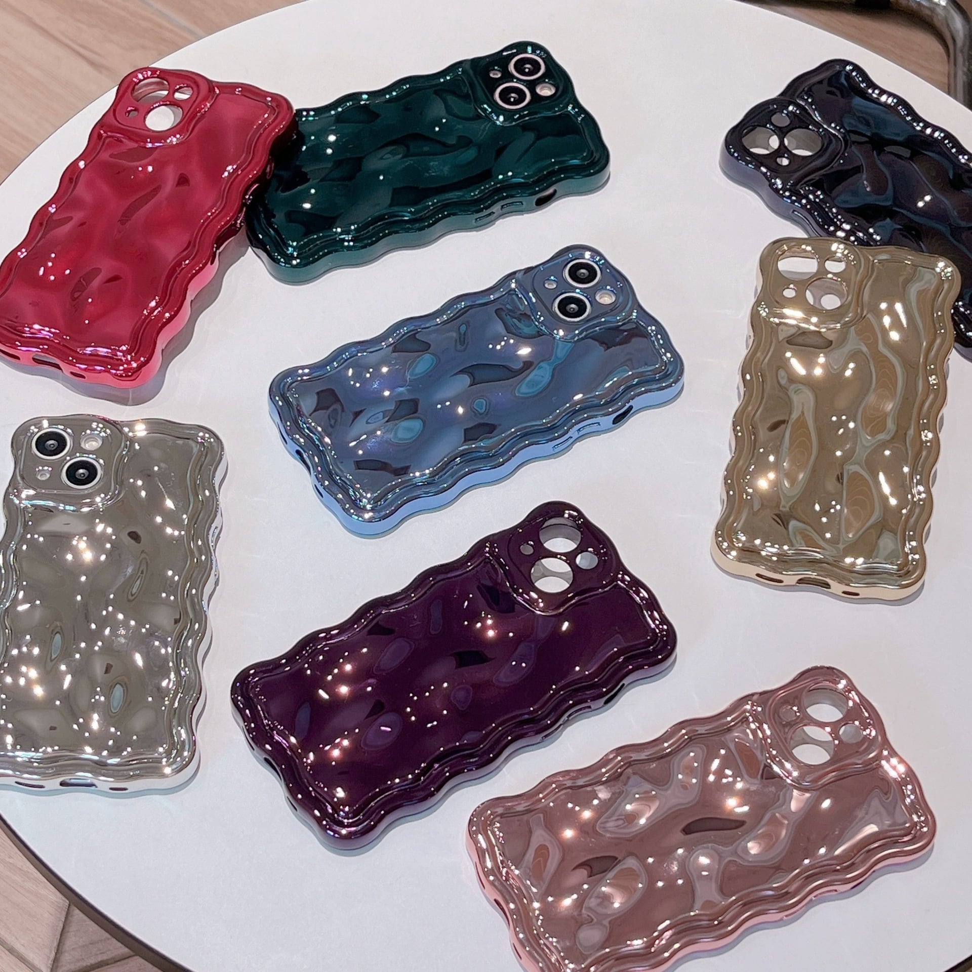 【iPhone16対応】うねうねケースが人気◎メタルカバー 水面 模様 8色から選べる カメラ保護フレーム 韓国っぽ スマホケース ND-15412