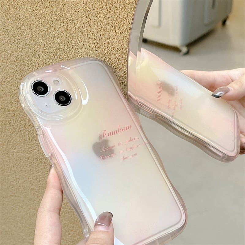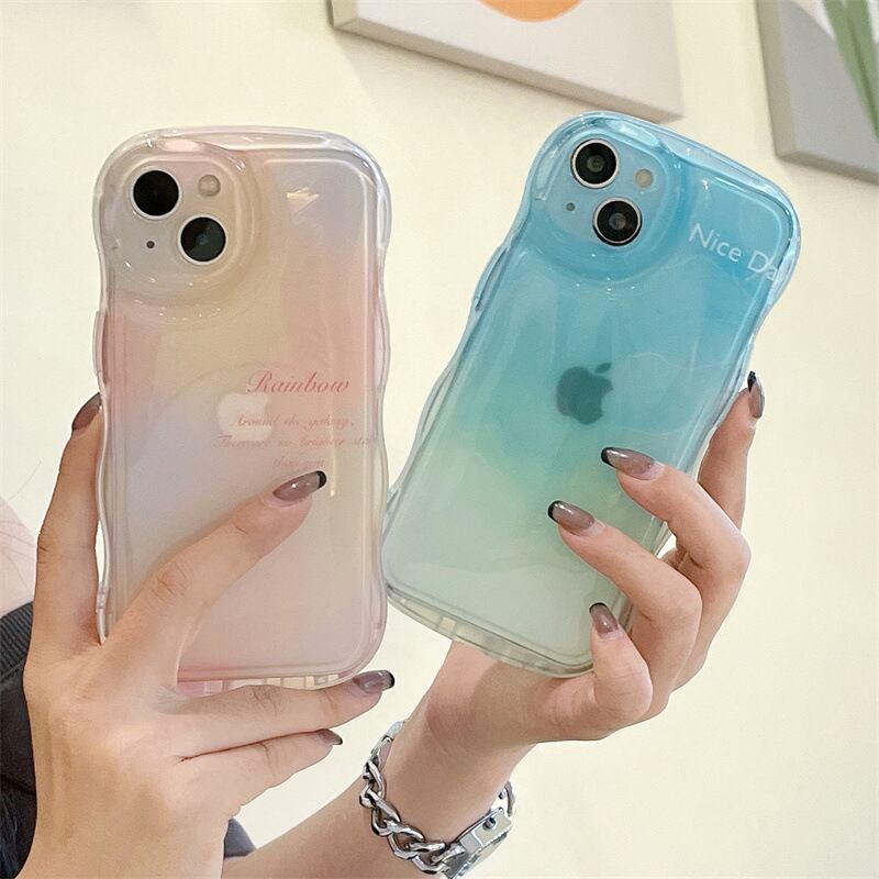 虹と海のグラデーション◎大人気 ウェーブフレーム 耐衝撃 クリアケース iPhone11 カメラ保護フレーム ブルー ピンク グラデ 透明 スマホケース ND-15446